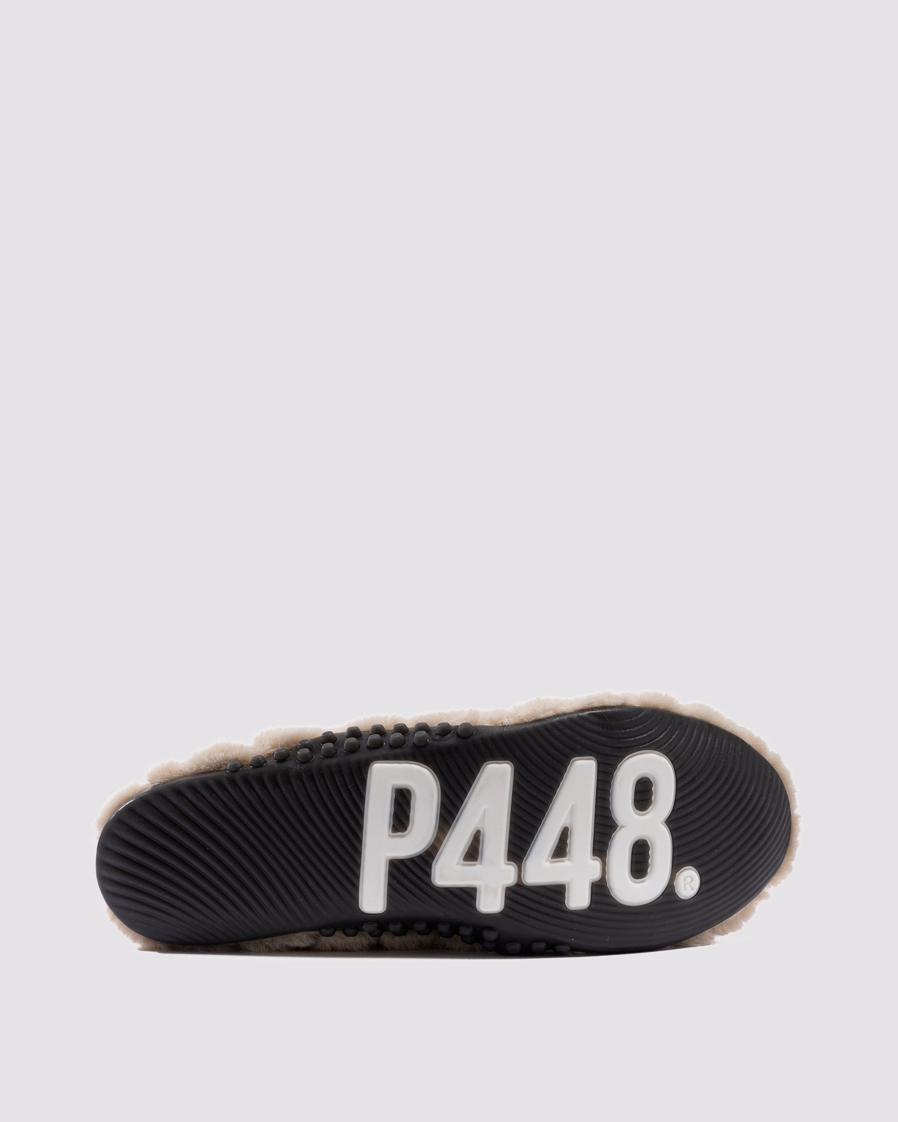 Our P448 designs push the boundaries of footwear by choosing unique specialty materials, some of which require particular care. This includes haircalf, glitter, denim, sponge, and others. These materials are often delicate and difficult to clean. Try to avoid wet or muddy areas when wearing and bring to a cleaning expert when dirty or stained.