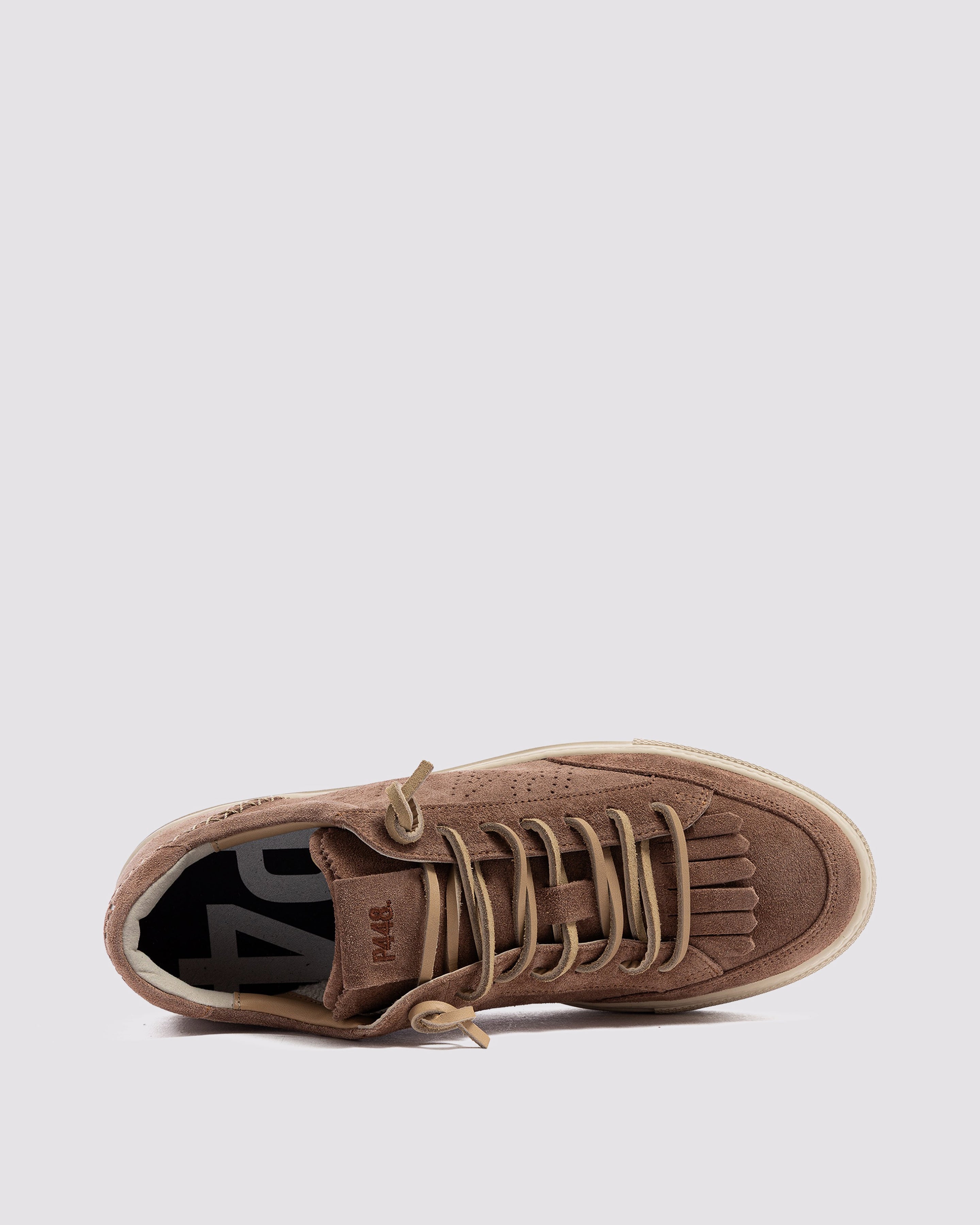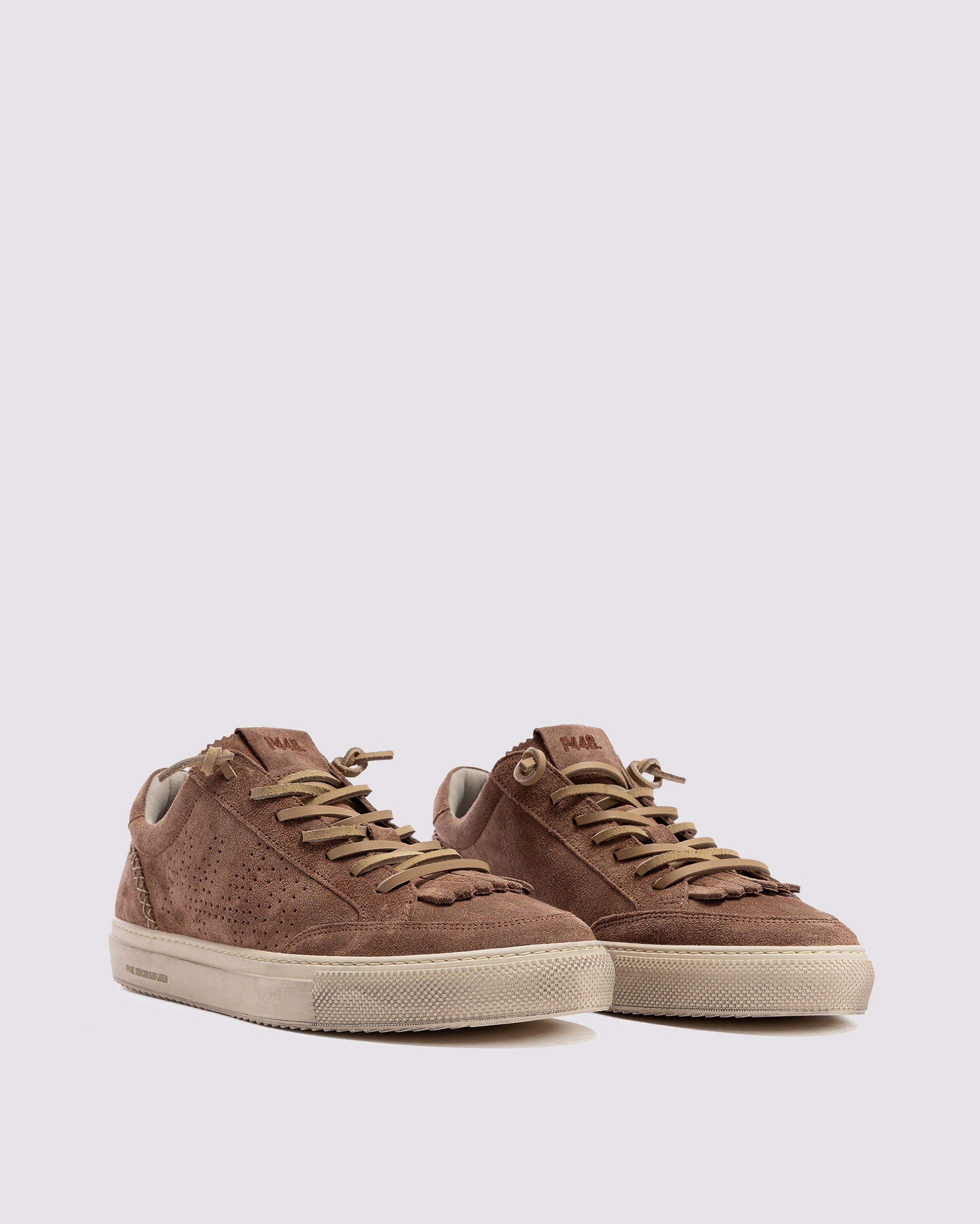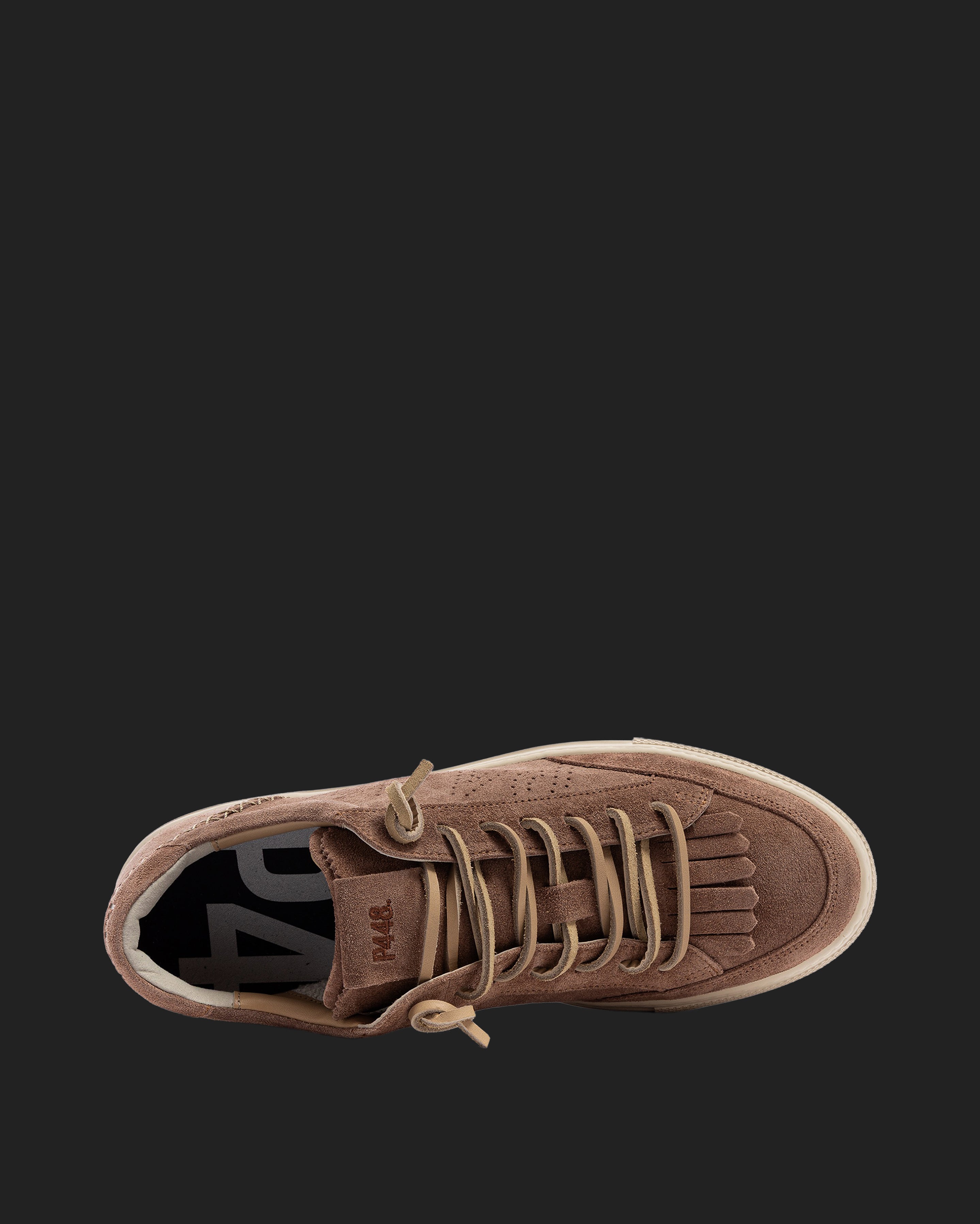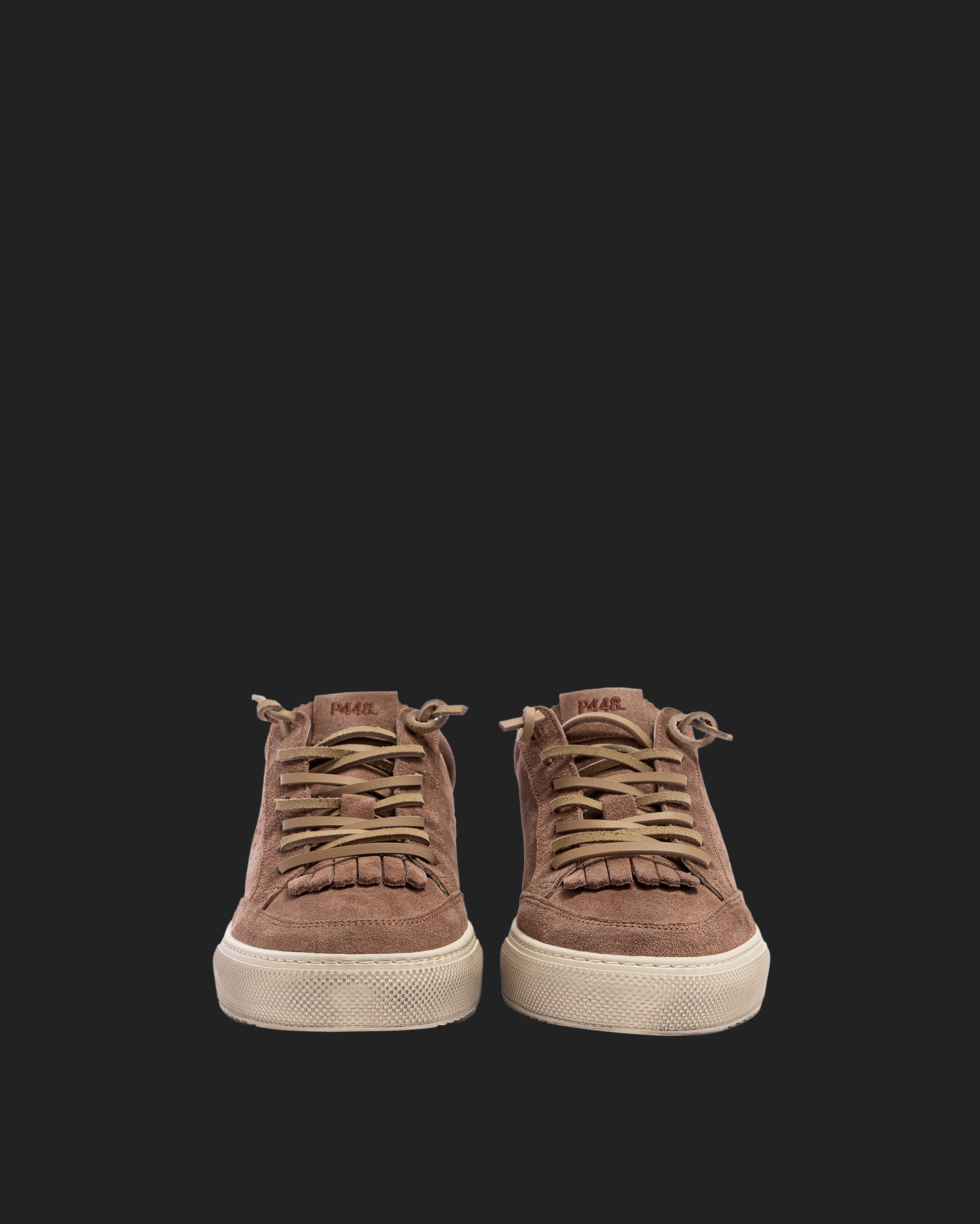 The Soho Terra Desert is wrapped in all-over brown suede with contrast heel stitching and a removable tassel tongue. The cream leather laces, our signature P448 hand-distressed rubber sole and cream tread ground the look. Swap in the extra pair of cream waxed cotton laces to keep it simple.