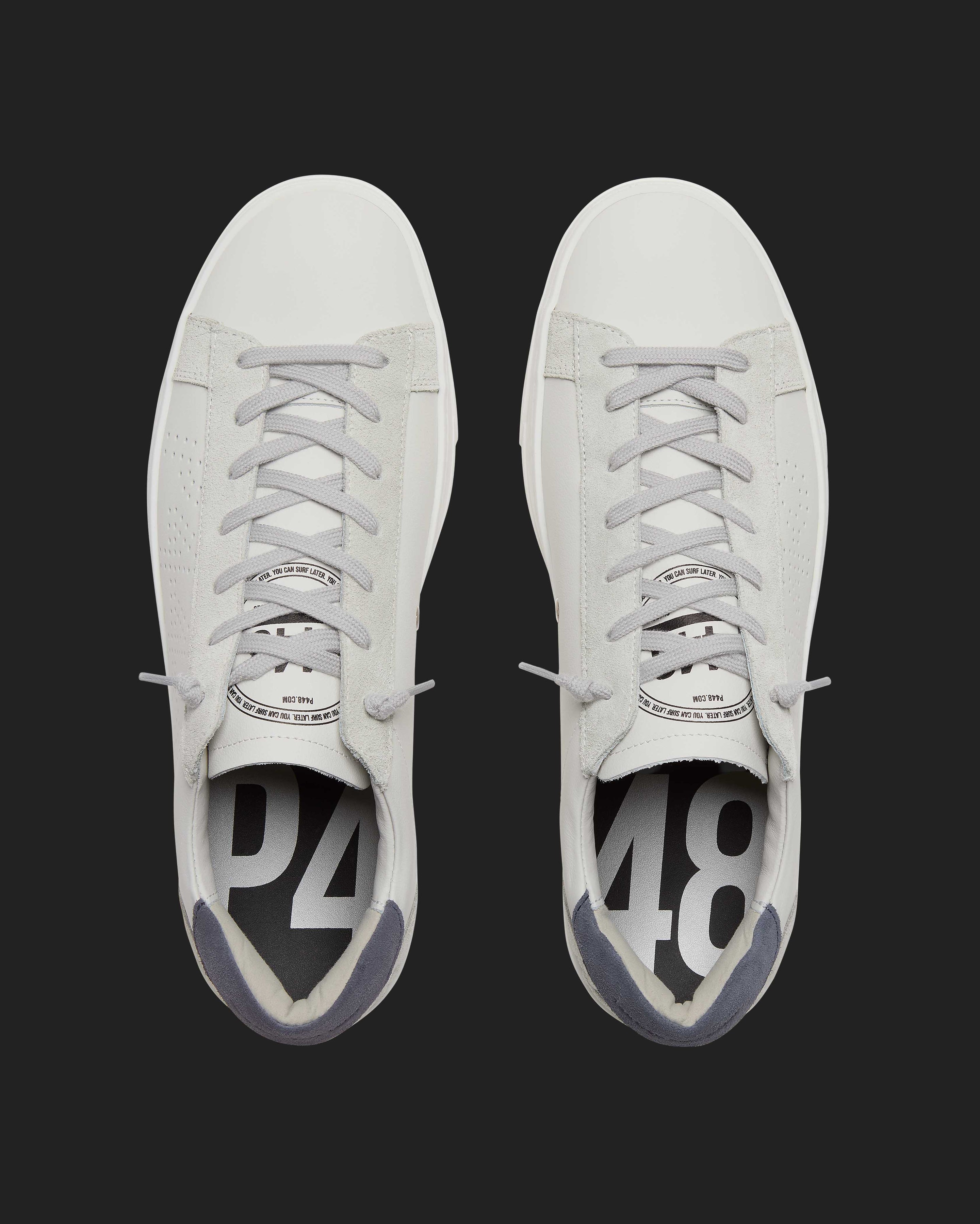 • White leather upper with perforated P448 logo