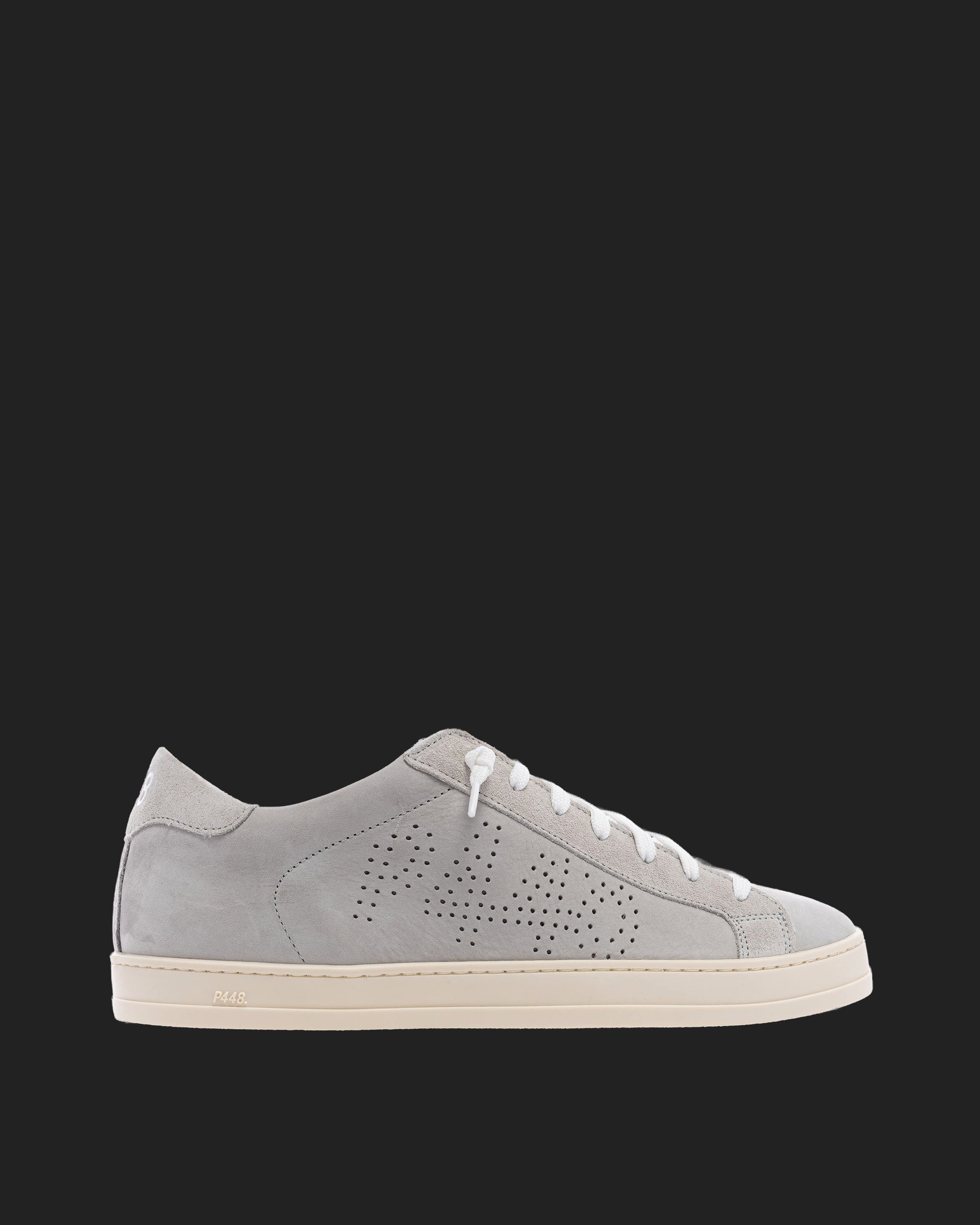 The John Green features a white leather upper with a perforated P448 logo, accented by a green suede tongue and...