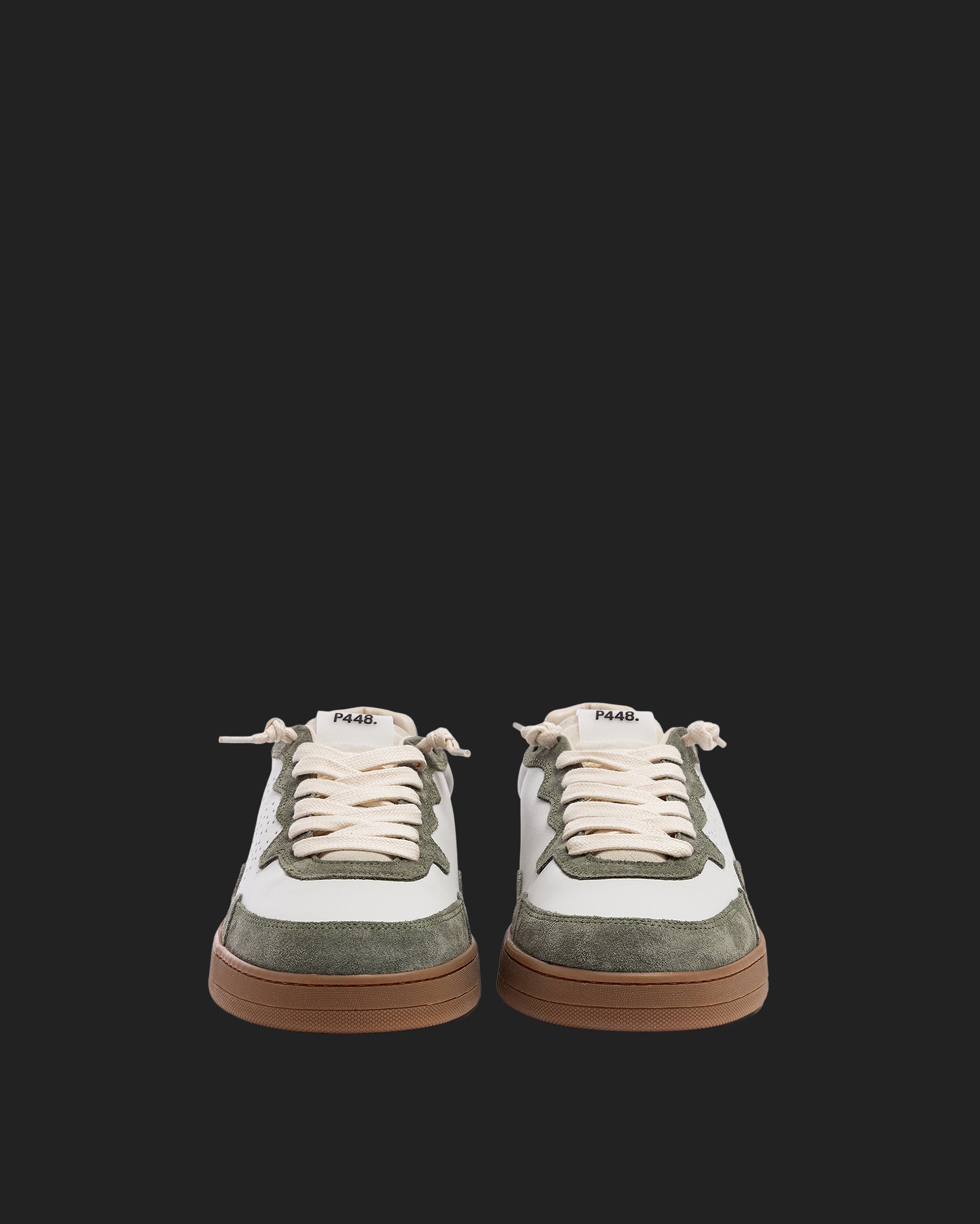 The Vert White/Bomb features all-over cream suede, accented by grey nubuck leather trims, a dark grey suede heel tab, white leather tongue and white laces to tie it all together. Our signature P448 hand-distressed rubber soles are crafted with skaters in mind, featuring a herringbone tread and pivot point for extra grip and ultimate comfort.