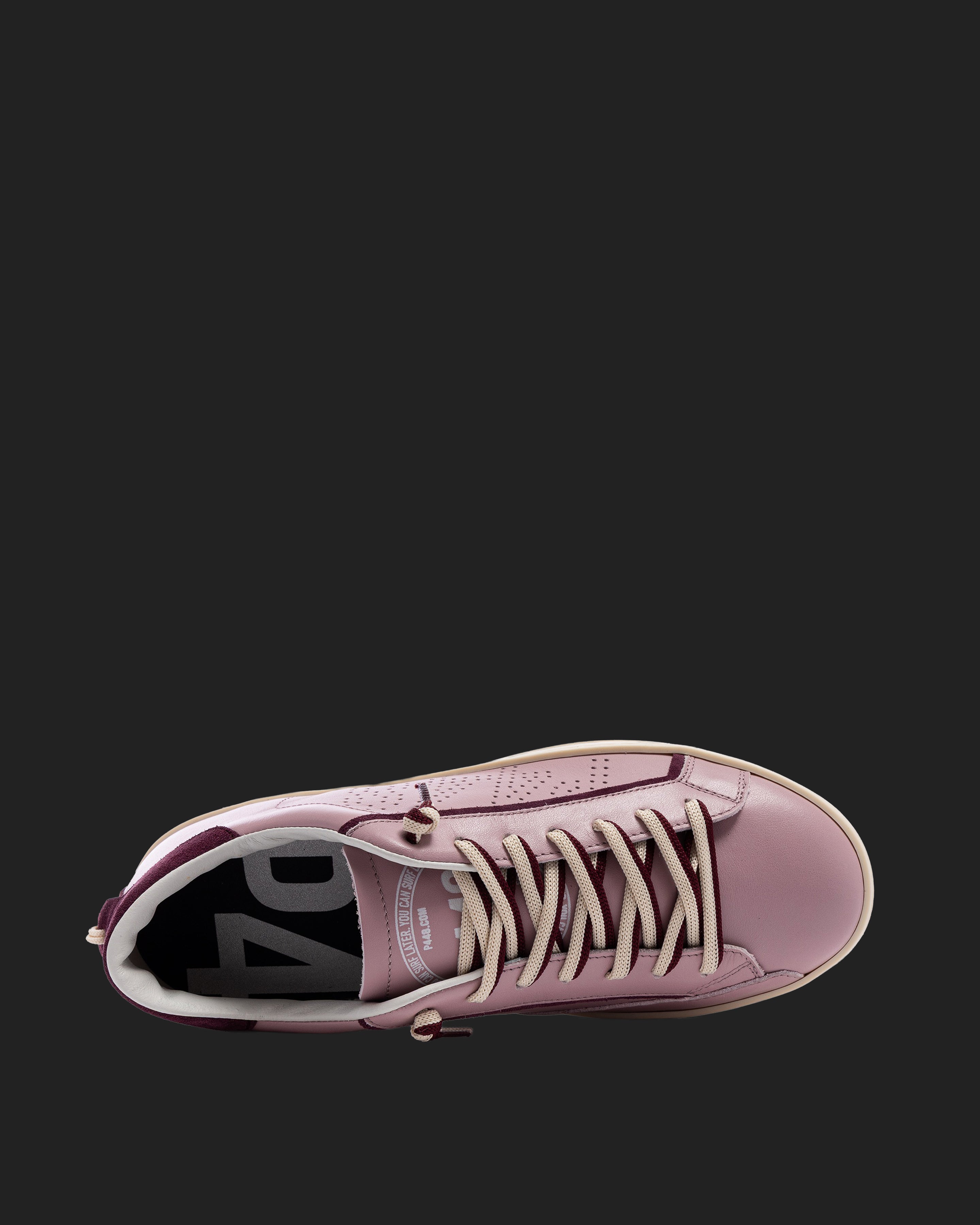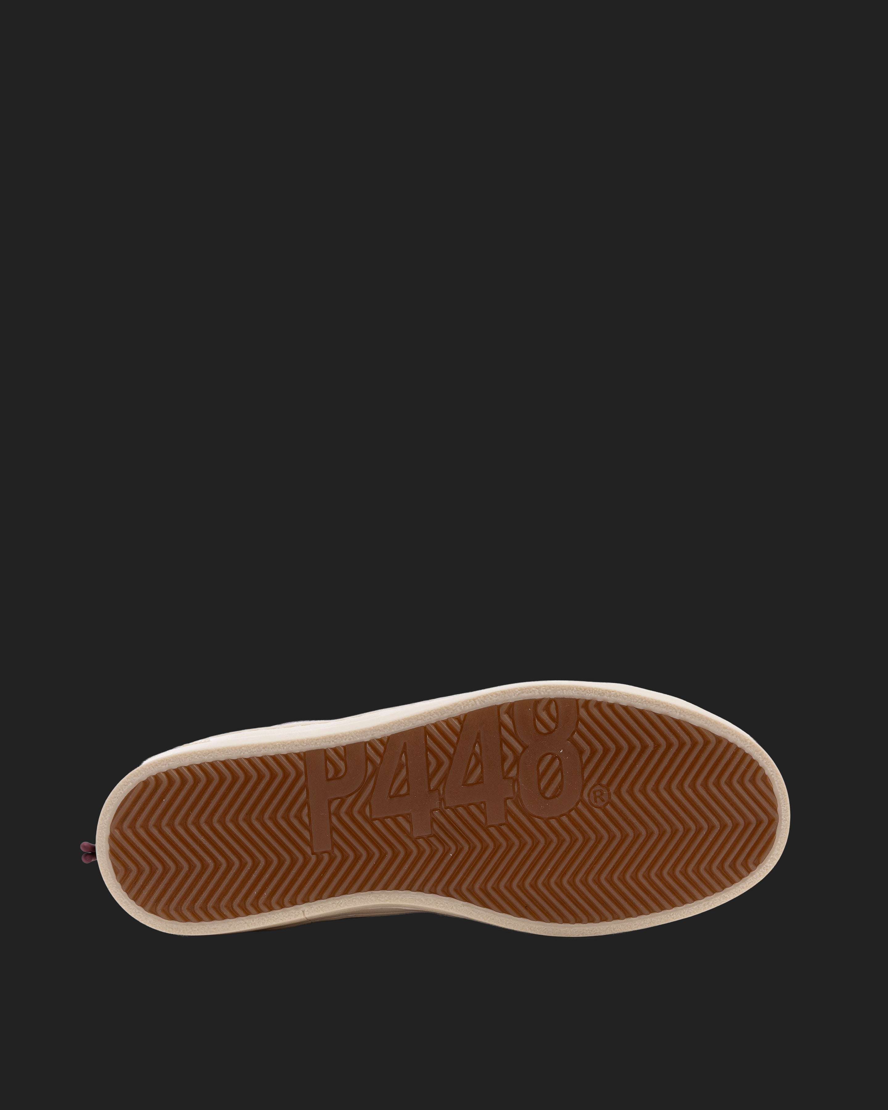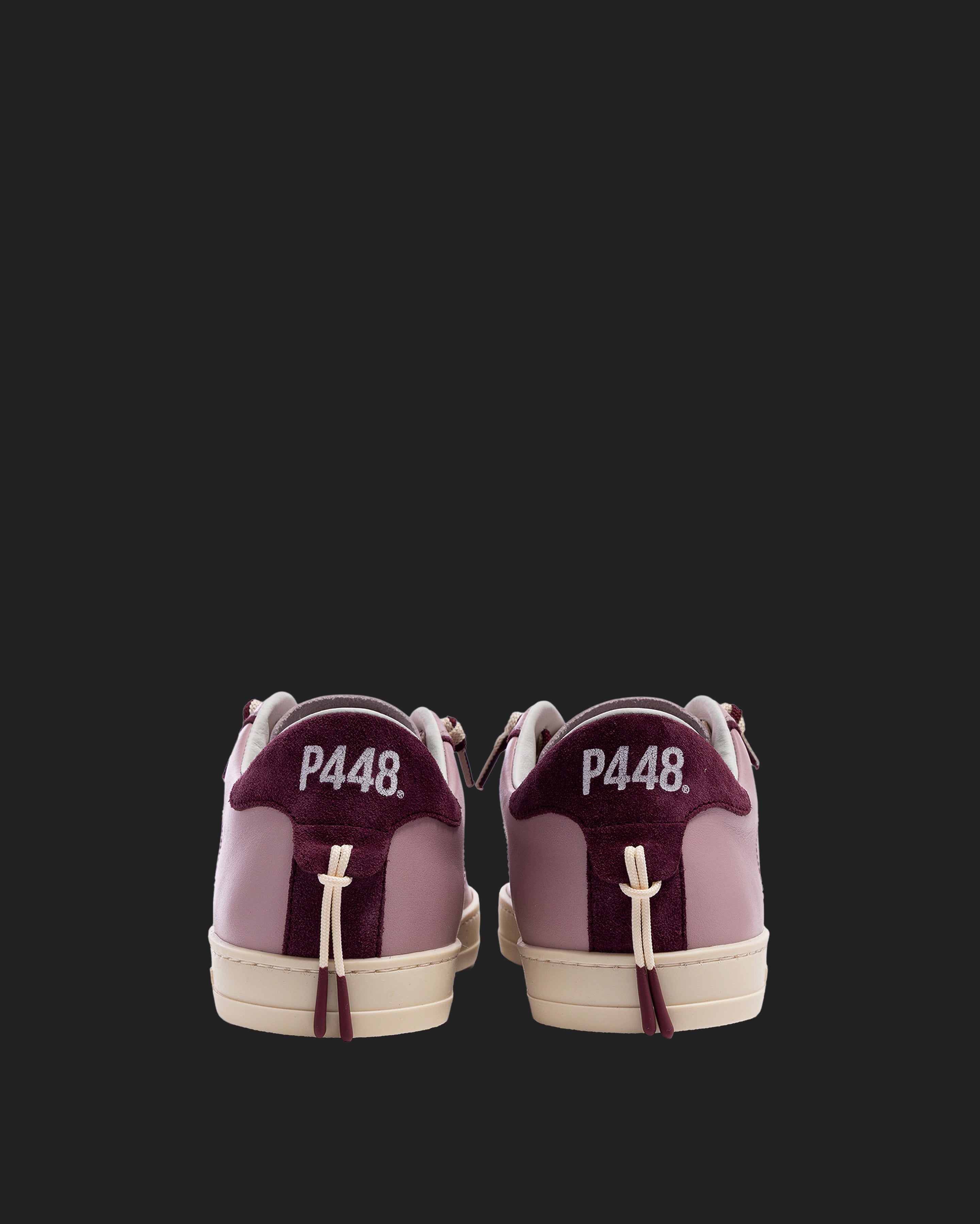 The John Pink Sky is wrapped in pink leather and red suede, complemented by matching burgundy laces with a cream lace charm. Our signature P448 rubber sole and cream tread finish off the look. Swap in the extra pair of cream laces to keep it simple.