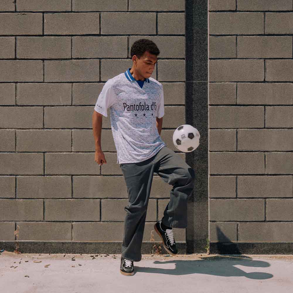 Un omaggio alle nostre radici italiane e una celebrazione della moda dentro e fuori dal campo. Questa collezione di maglie da calcio premium Pantofola d'Oro è un capolavoro a sé stante, che unisce l’alta qualità dell’artigianato italiano, design nostalgico e fanwear all’avanguardia. Abbina queste maglie iconiche ai nostri capi ispirati al calcio, caratterizzati da silhouette retrò e inserti sportivi.