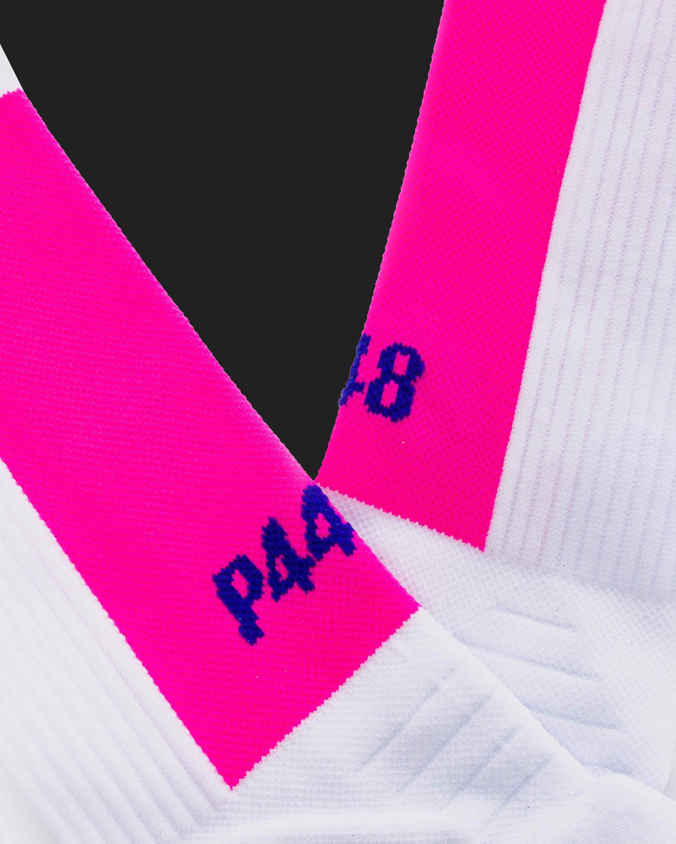 Aspettarsi l'inaspettato è ciò che riguarda P448. In questo calzino bianco, una striscia rosa fluo circonda la caviglia, aggiungendo un tocco divertente a qualsiasi scarpa con cui li indossi.