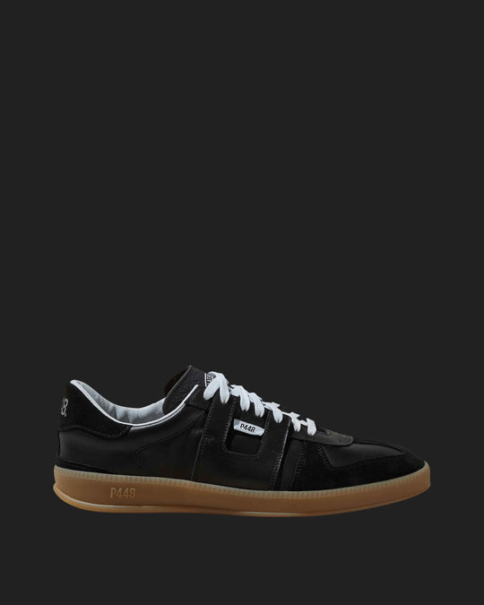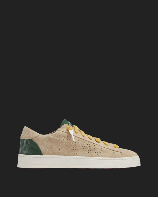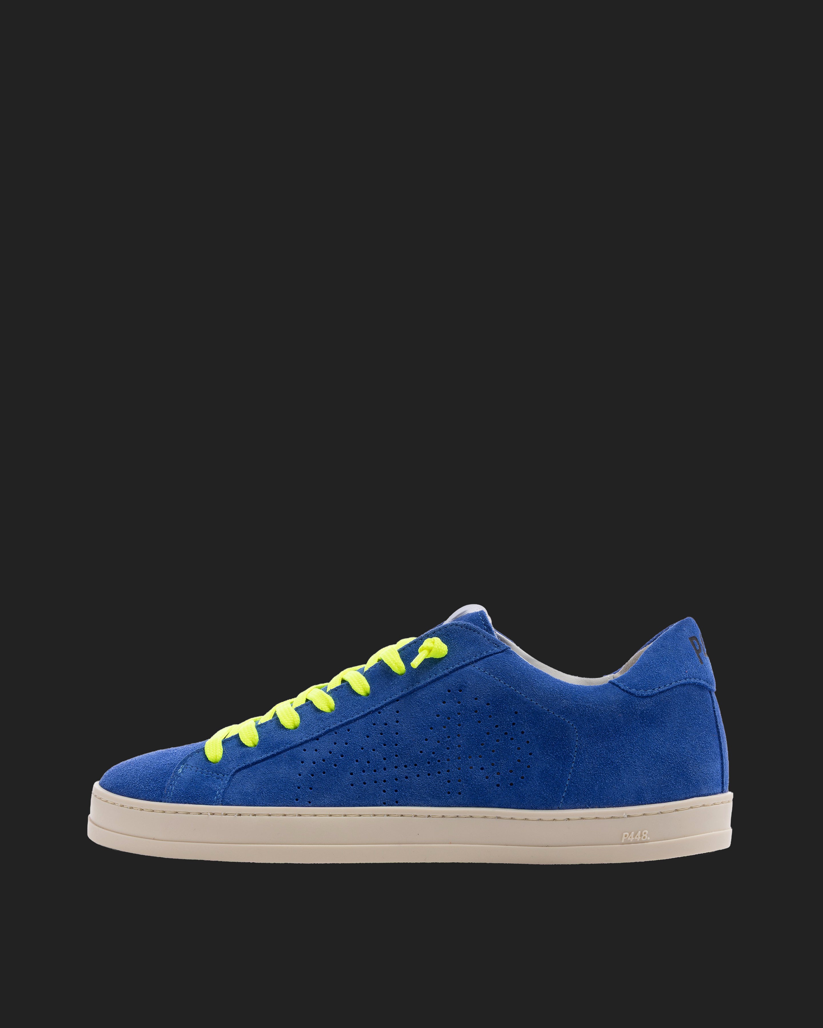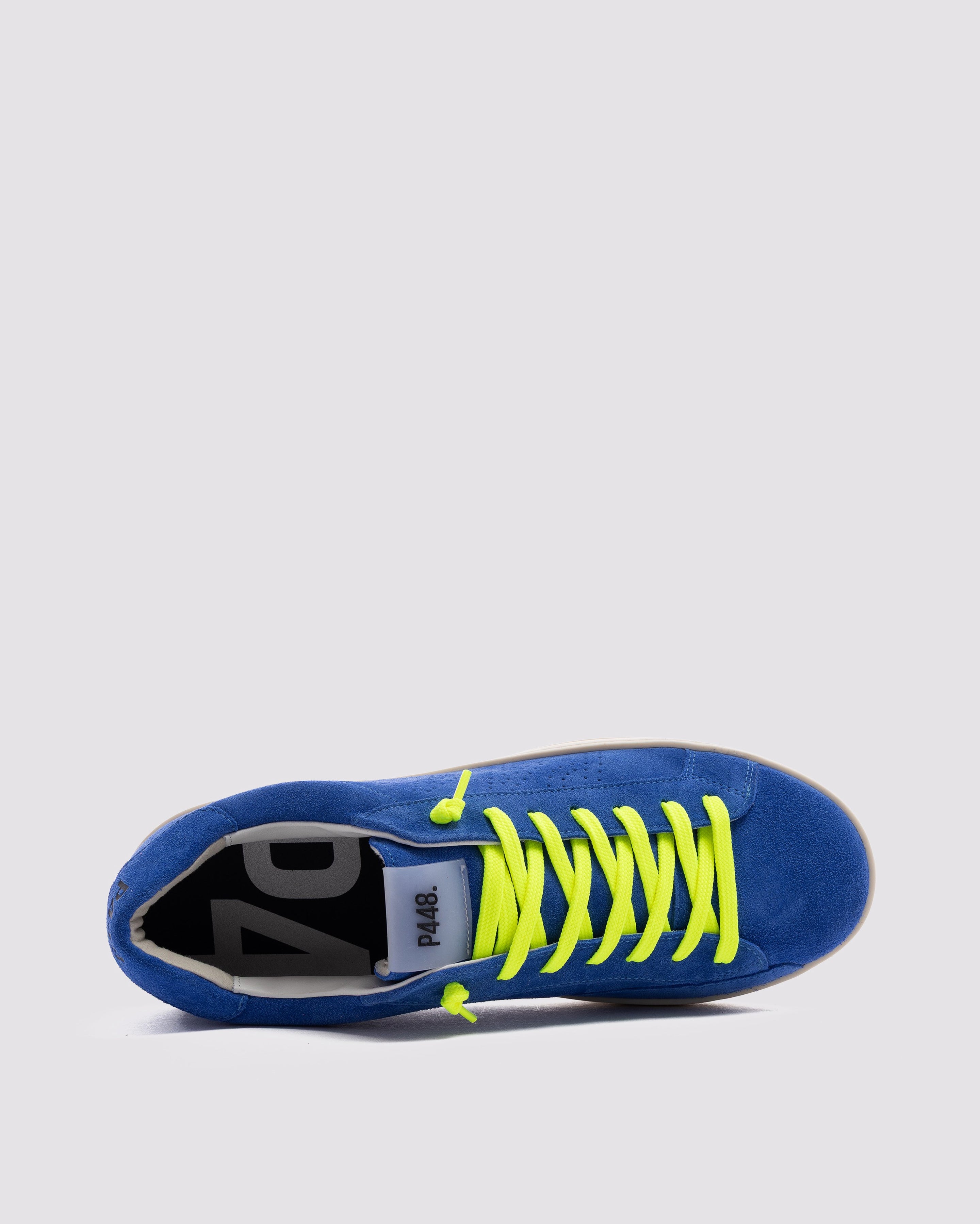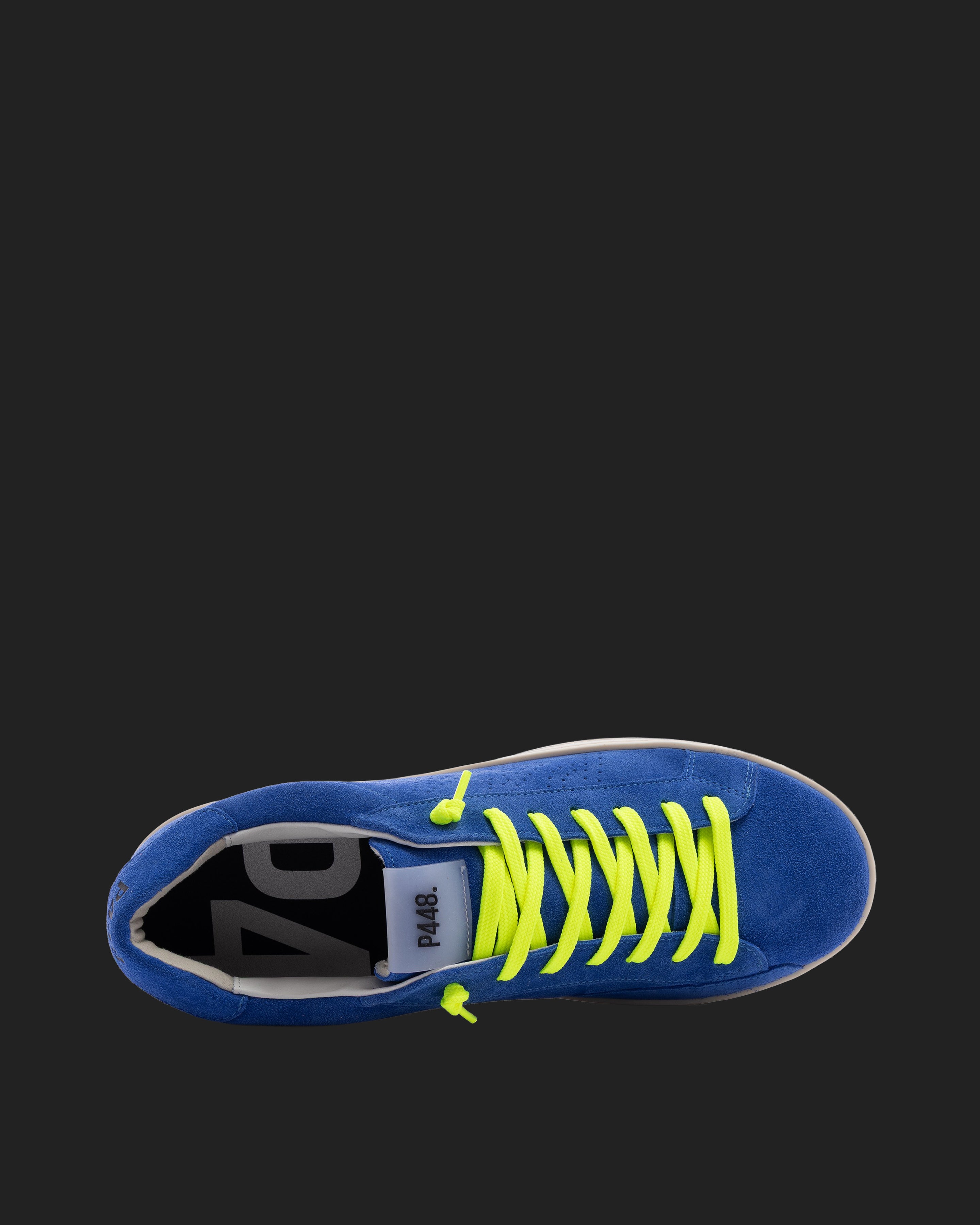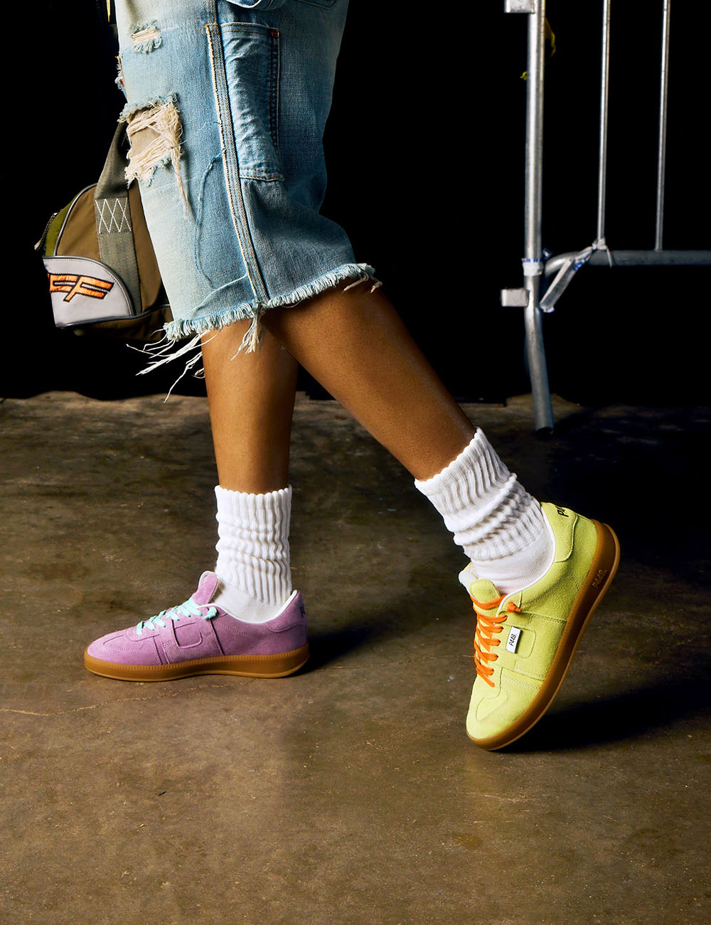 Both feature matching suede tongues, trims, toes, and heel accents. Violet laces on one and yellow laces on the other, along with our signature P448 rubber soles finished with black treads, tie it all together.