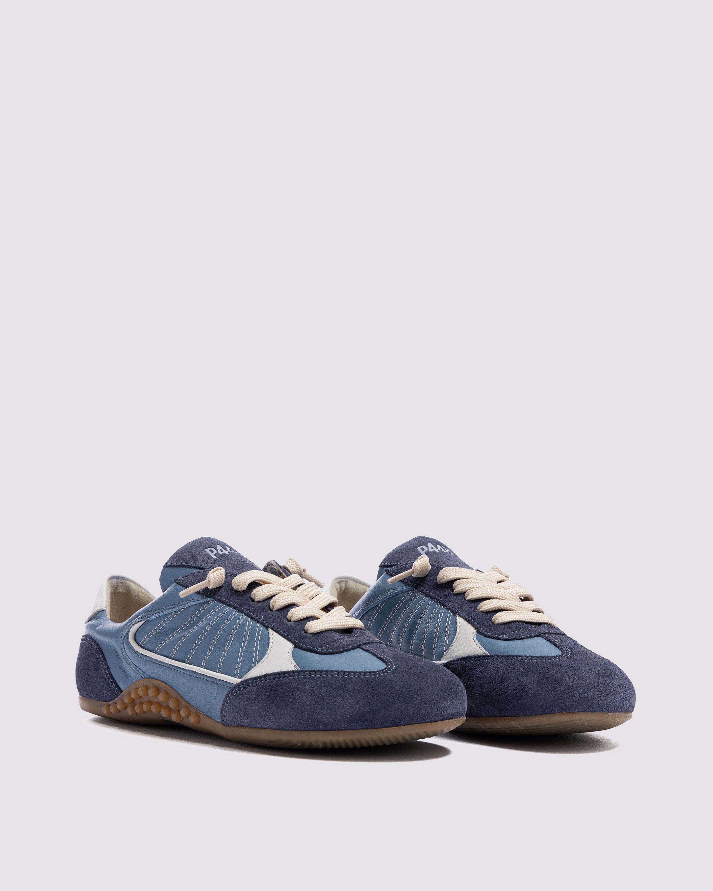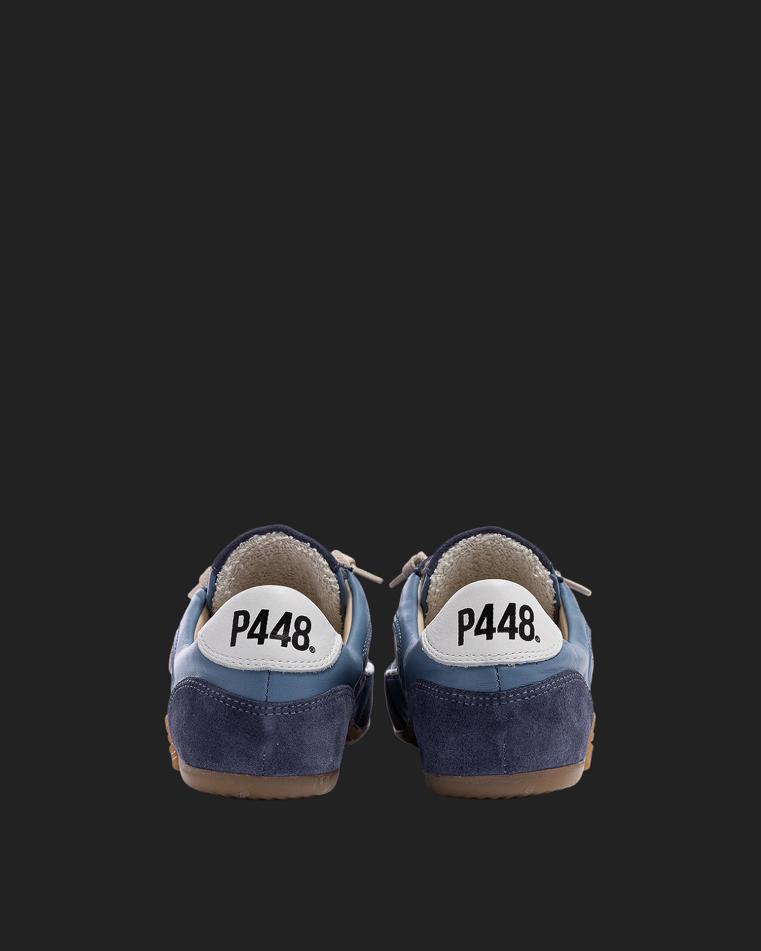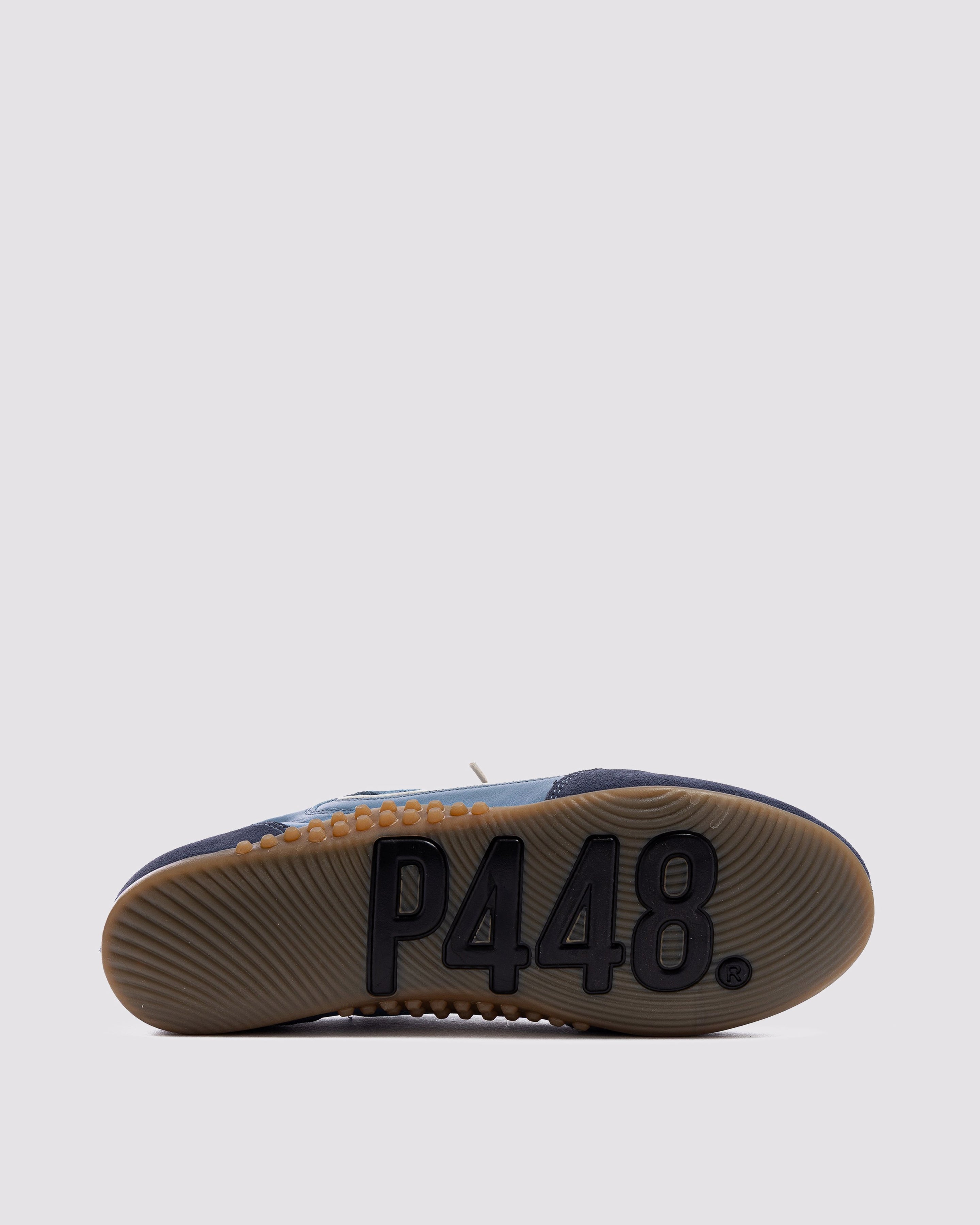 The Lisbon Indigo is a P448 sacchetto-designed retro soccer silhouette that uses a handmade process to bring you extra softness, flexibility and comfort. Sleek all-over light blue leather and blue suede are complemented by a white leather heel tab and contrast stitching. Cream laces and our raised gum tread finish off the look. Swap in the extra pair of light blue laces for a monochromatic moment.