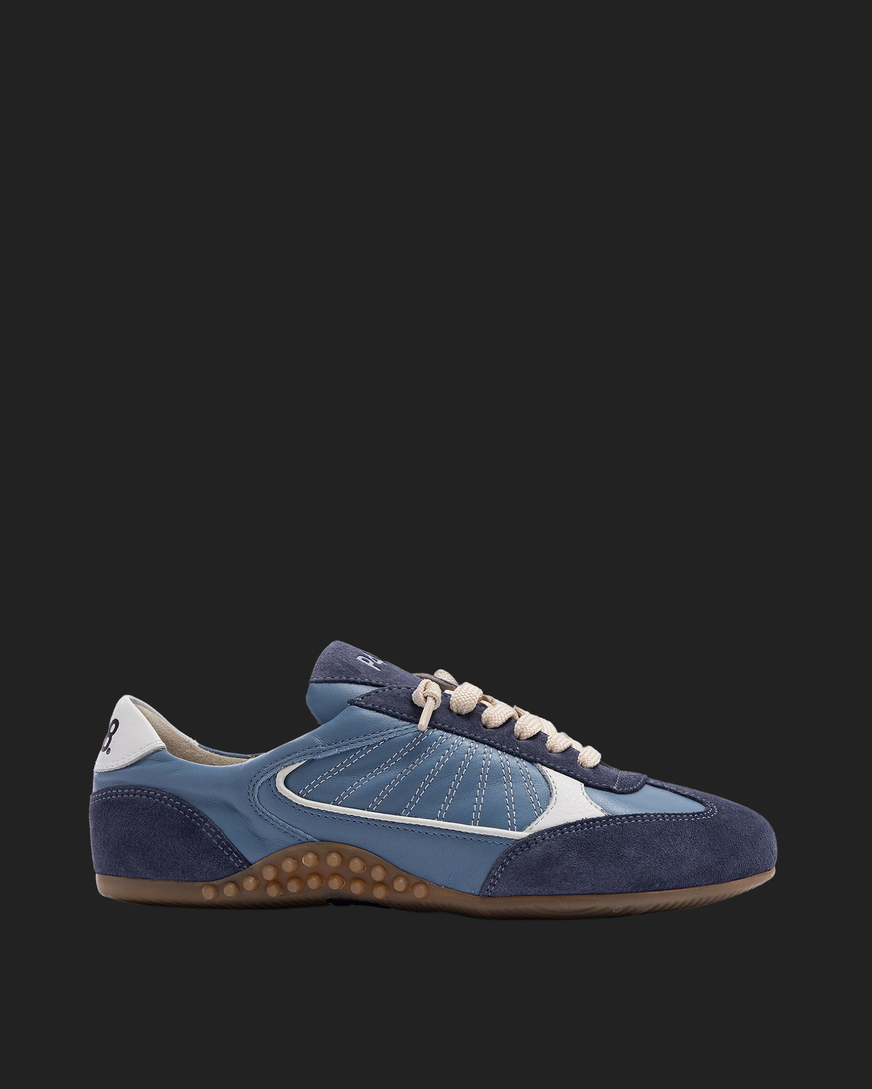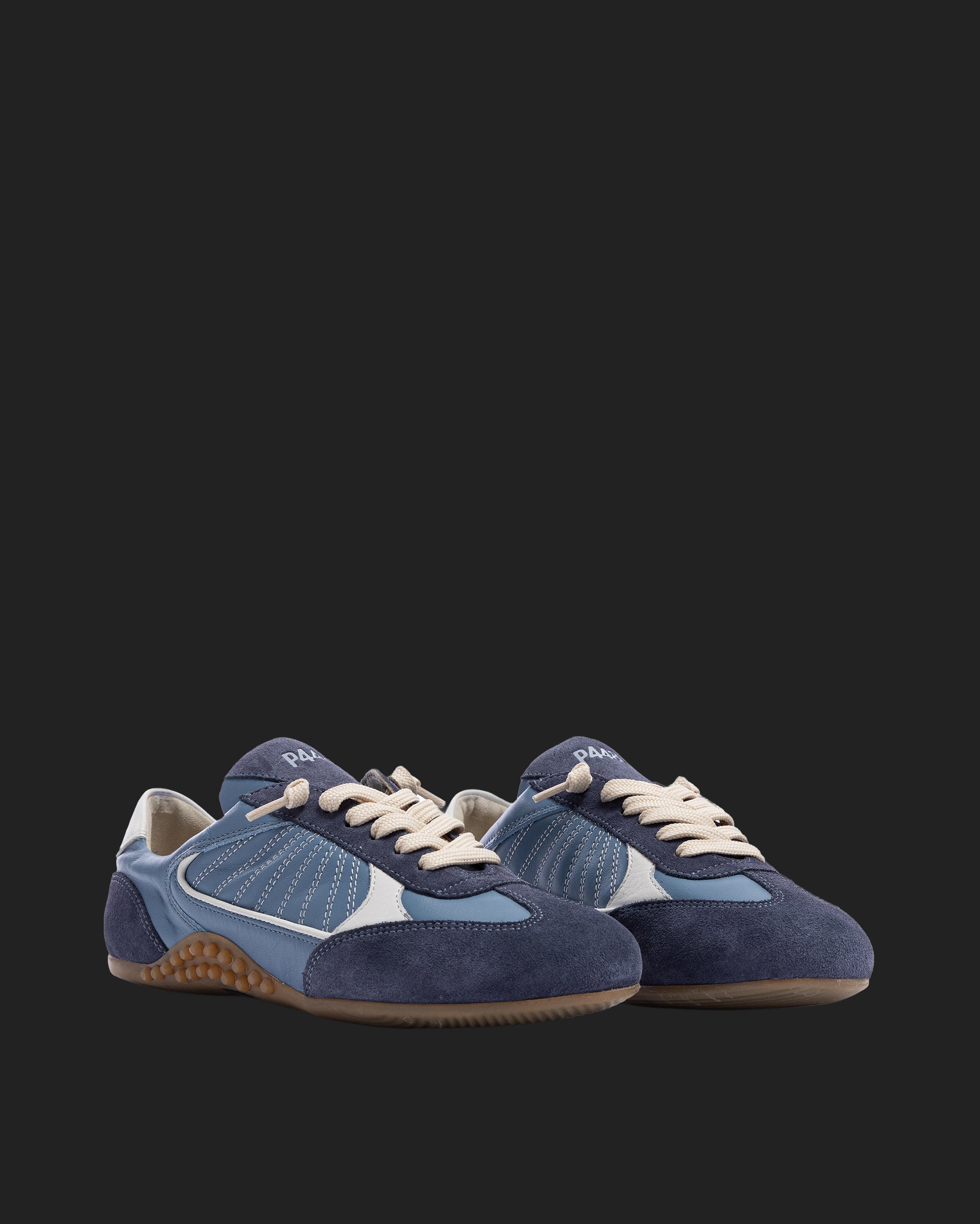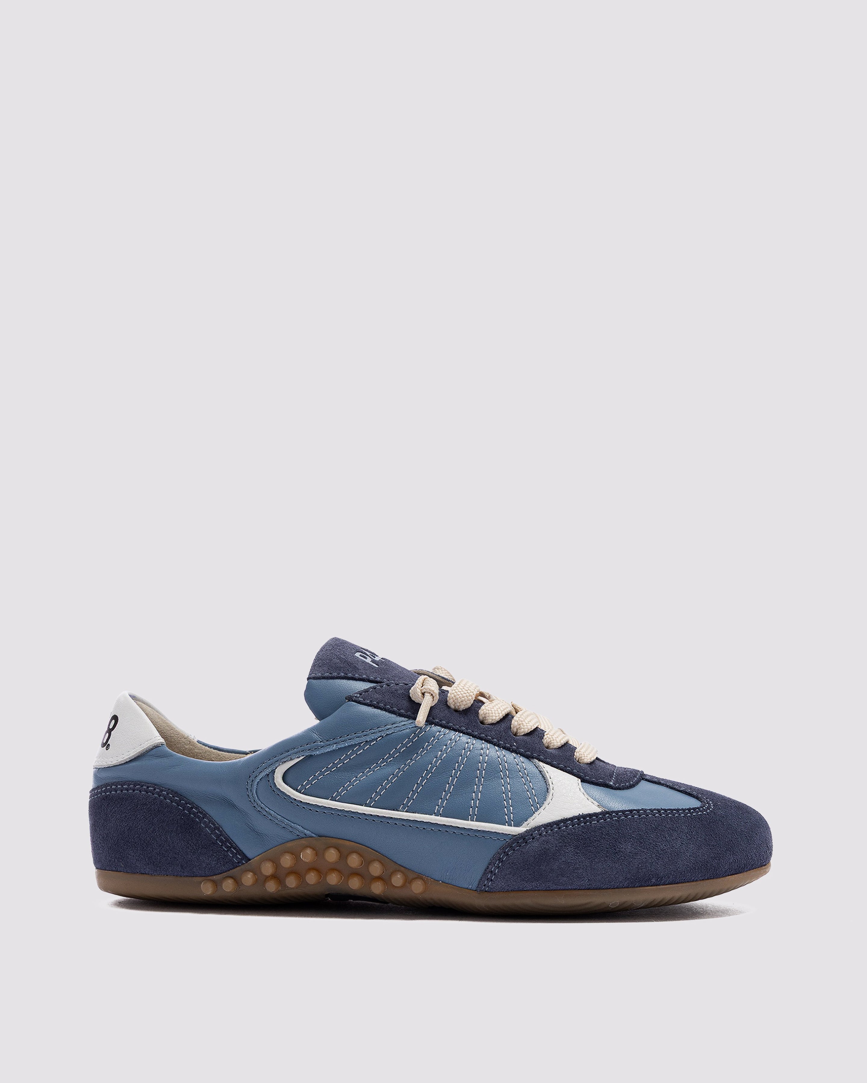 The Lisbon Indigo is a P448 sacchetto-designed retro soccer silhouette that uses a handmade process to bring you extra softness, flexibility and comfort. Sleek all-over light blue leather and blue suede are complemented by a white leather heel tab and contrast stitching. Cream laces and our raised gum tread finish off the look. Swap in the extra pair of light blue laces for a monochromatic moment.