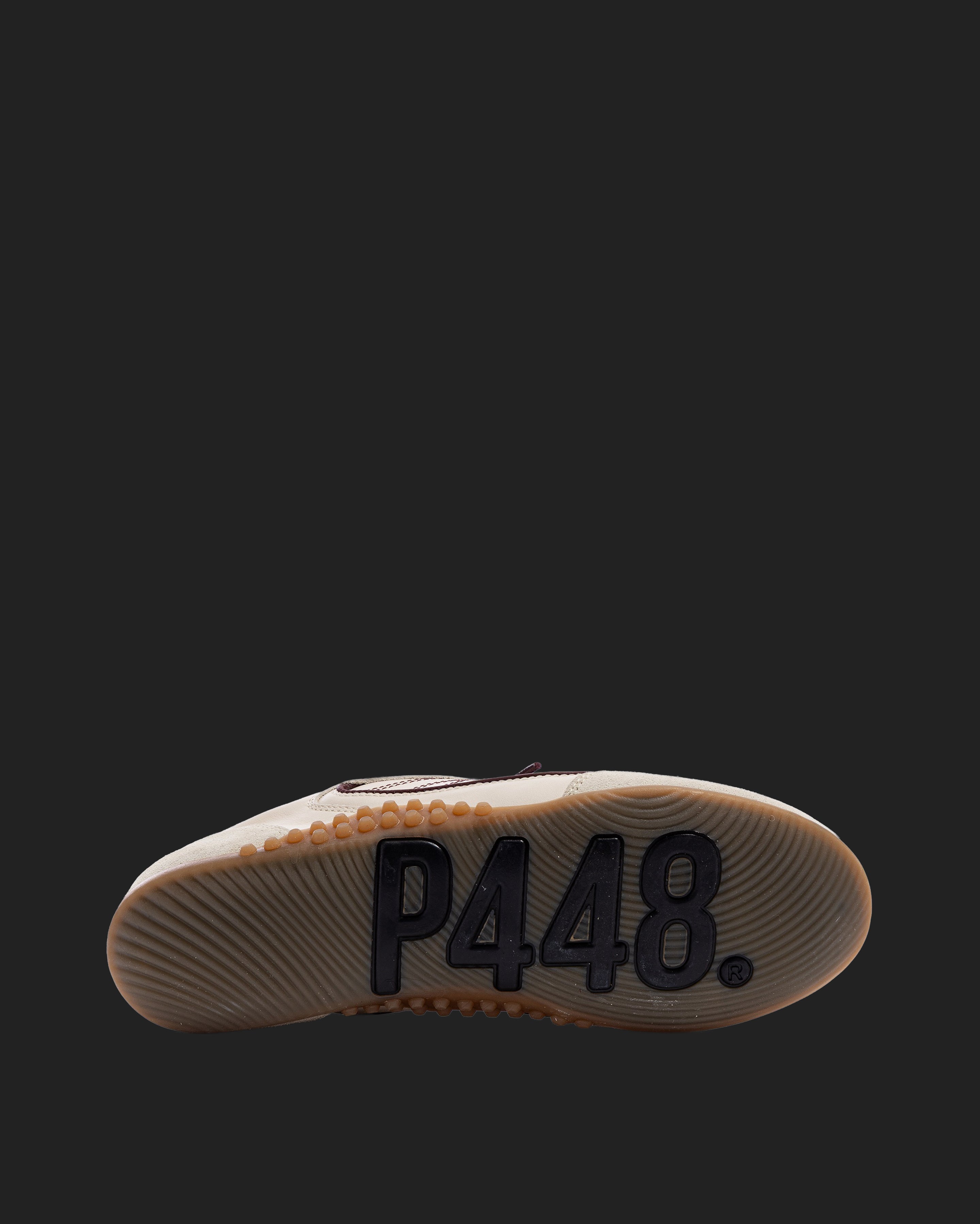 The Lisbon Cream Maroon is a P448 sacchetto-designed retro soccer silhouette that uses a handmade process to bring you extra softness, flexibility and comfort. Sleek all-over white leather and cream suede are complemented by a maroon leather heel tab and contrast stitching. Burgundy laces and our raised gum tread finish off the look. Swap in the extra pair of cream laces for a monochromatic moment.