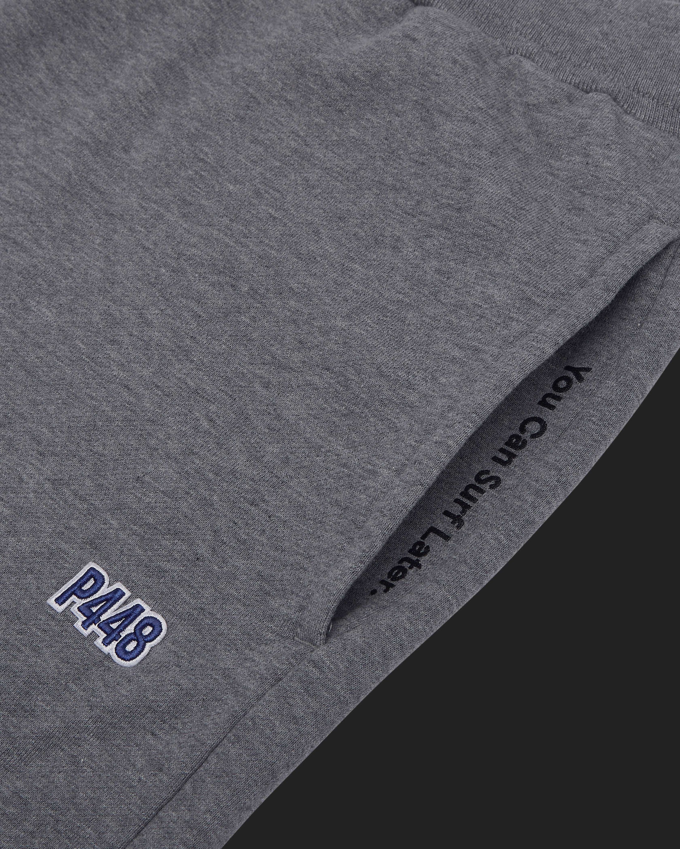 Mantieni un look fresco con questi shorts comodi. I nostri Shorts Unisex grigi presentano un logo P448 ricamato sul davanti in blu. Questi shorts sono realizzati in Italia con 100% cotone biologico per una sensazione extra morbida.