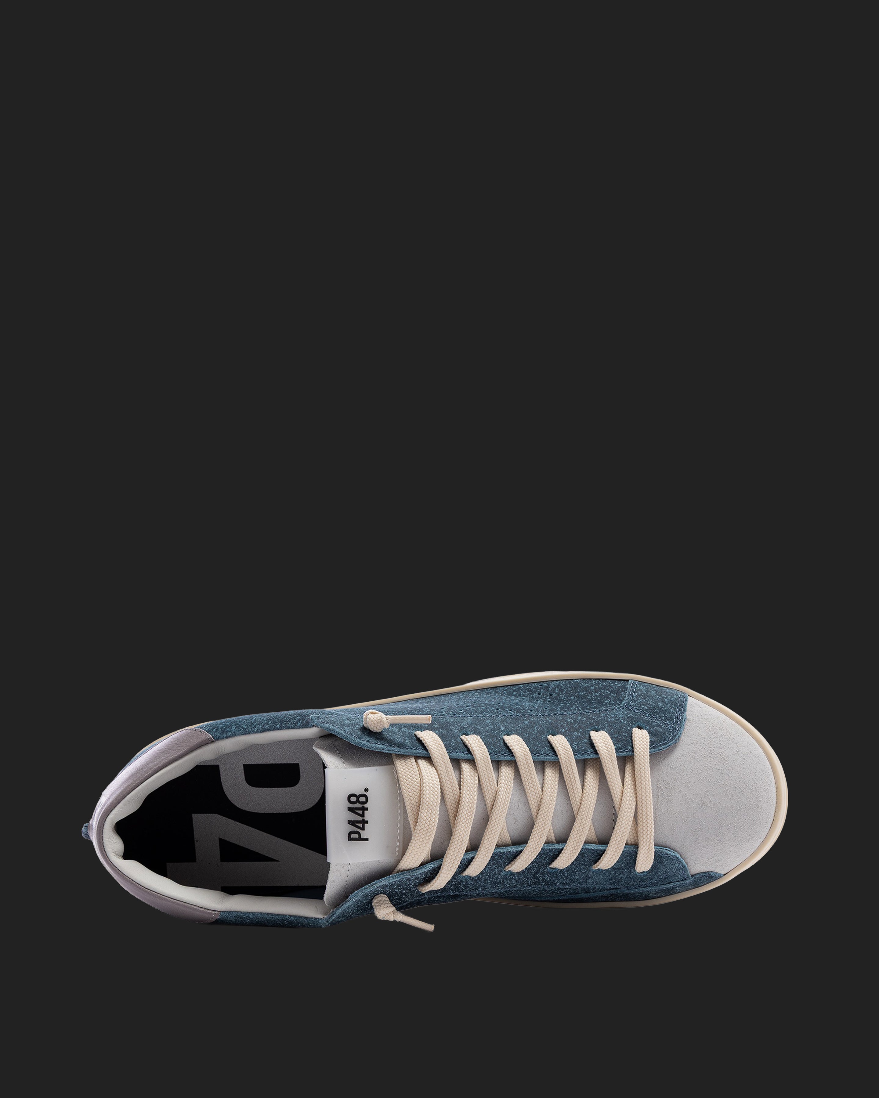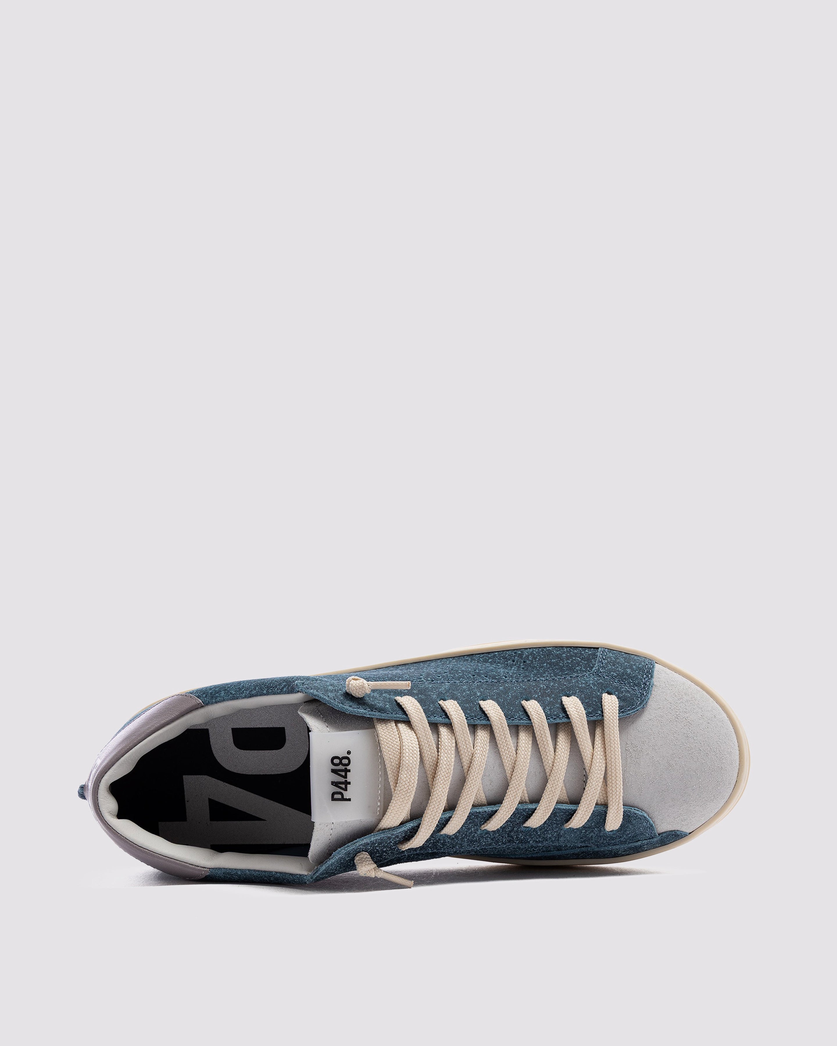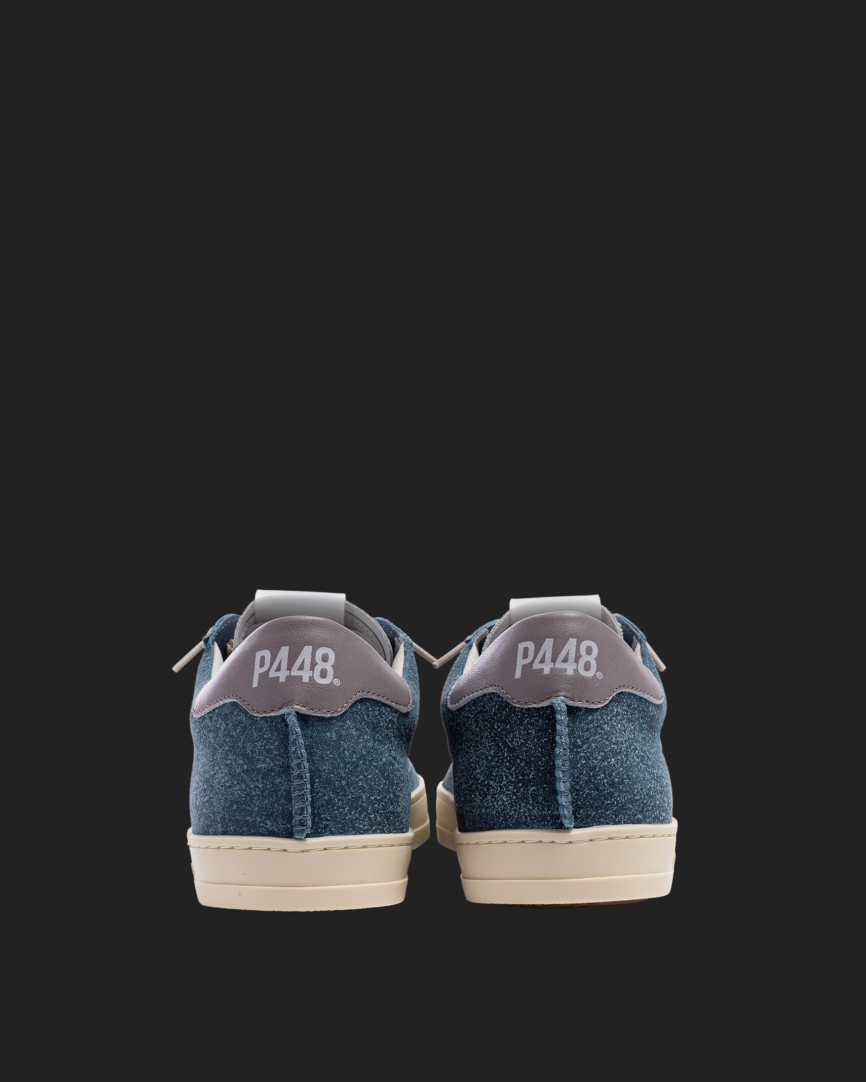 John Deco Sky is a 100% deconstructed pair designed to bring you lightweight comfort and maximum breathability for a fits-like-a-glove feel. Wrapped in blue and white waxed suede details with a complementary grey leather heel tab and cream laces. Our signature P448 rubber sole and gum tread ground the look. Swap in the extra pair of dark grey laces to tie it all together.