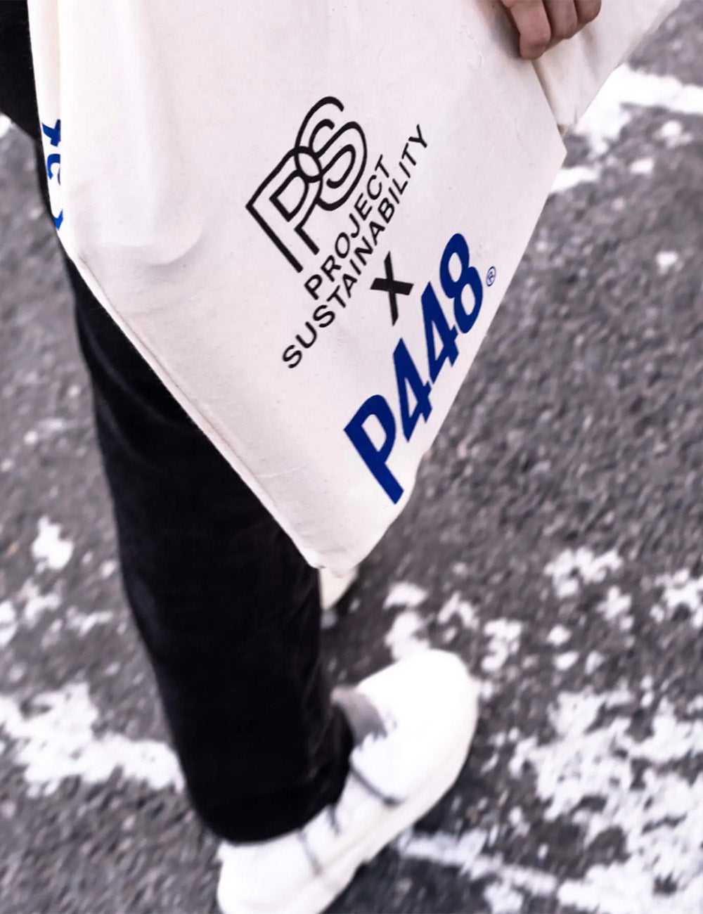 Per ridurre l'impatto ambientale complessivo dei prodotti P448, il marchio punta a ridurre la quantità di materiali monouso prodotti per l'imballaggio e la spedizione ai clienti.