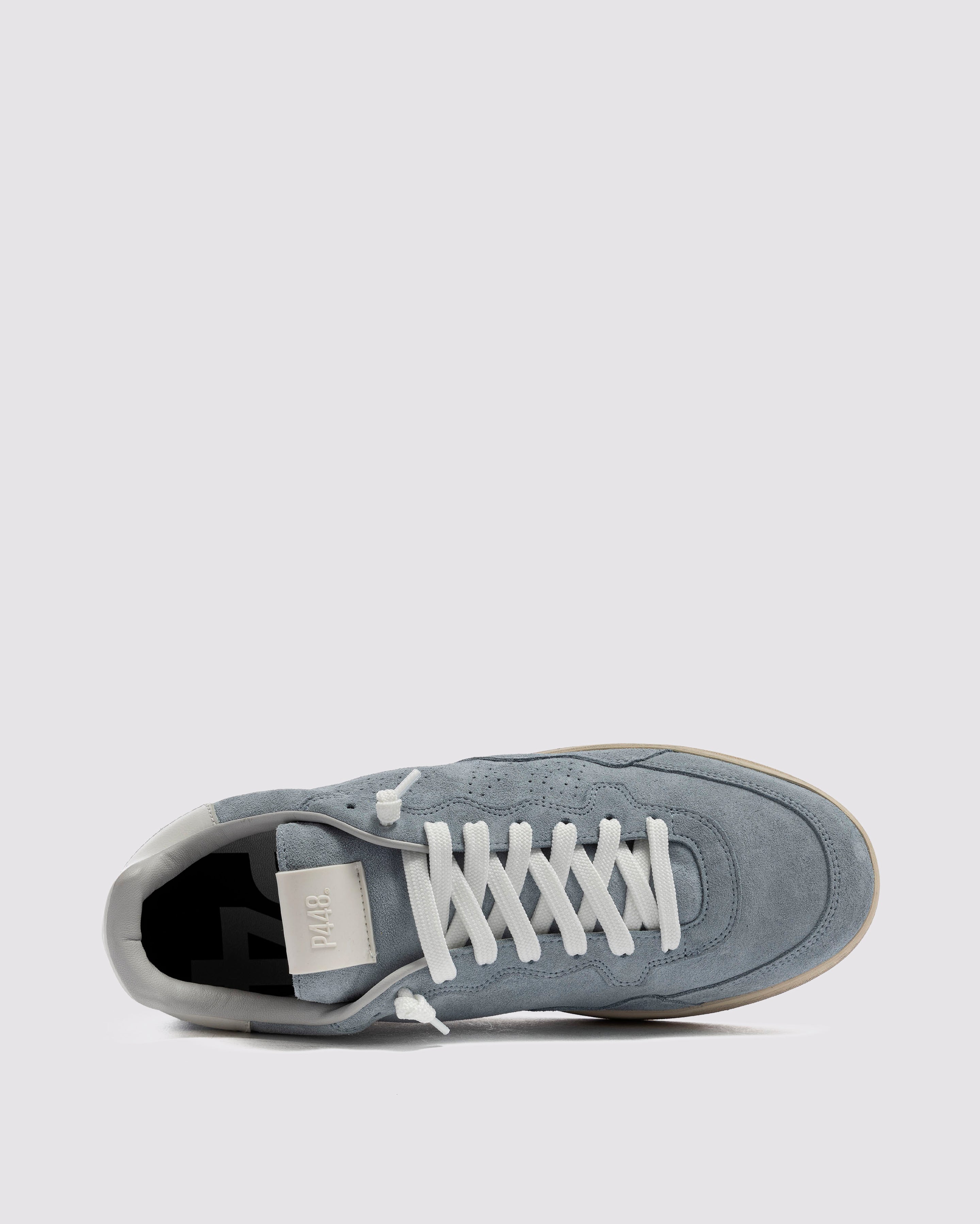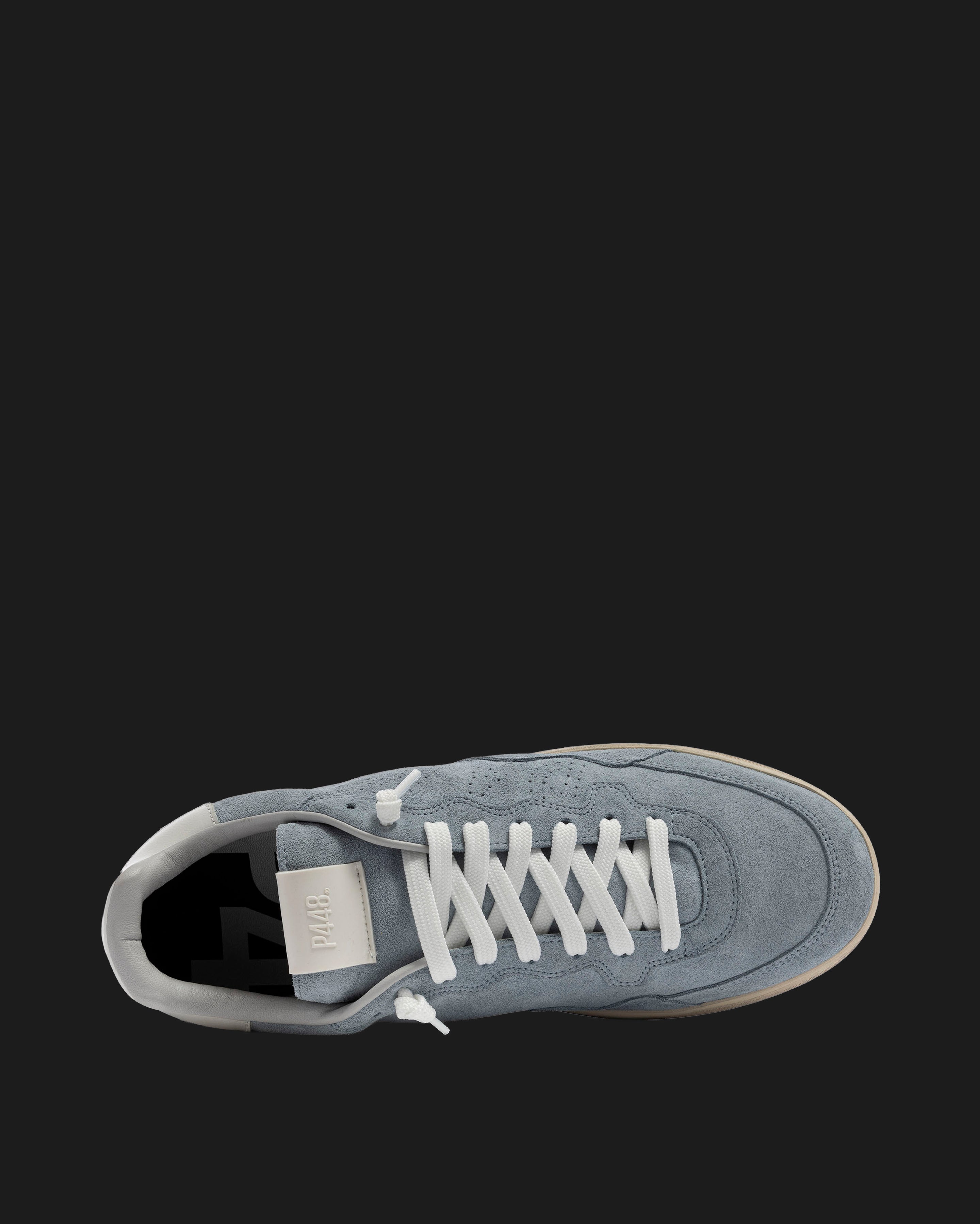 The Vert Storm features all-over light blue suede, accented by a beige leather heel tab and white laces. Our signature P448 hand-distressed rubber soles are crafted with skaters in mind, featuring a herringbone tread and pivot point for extra grip and ultimate comfort.