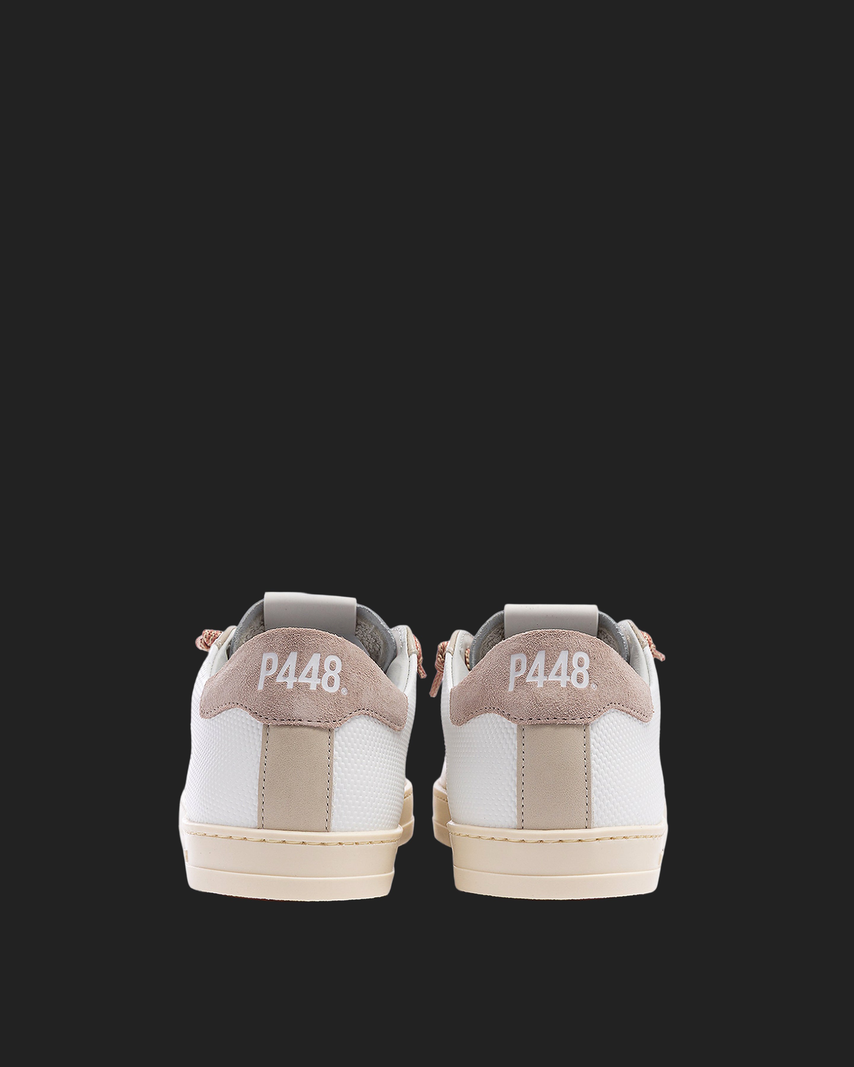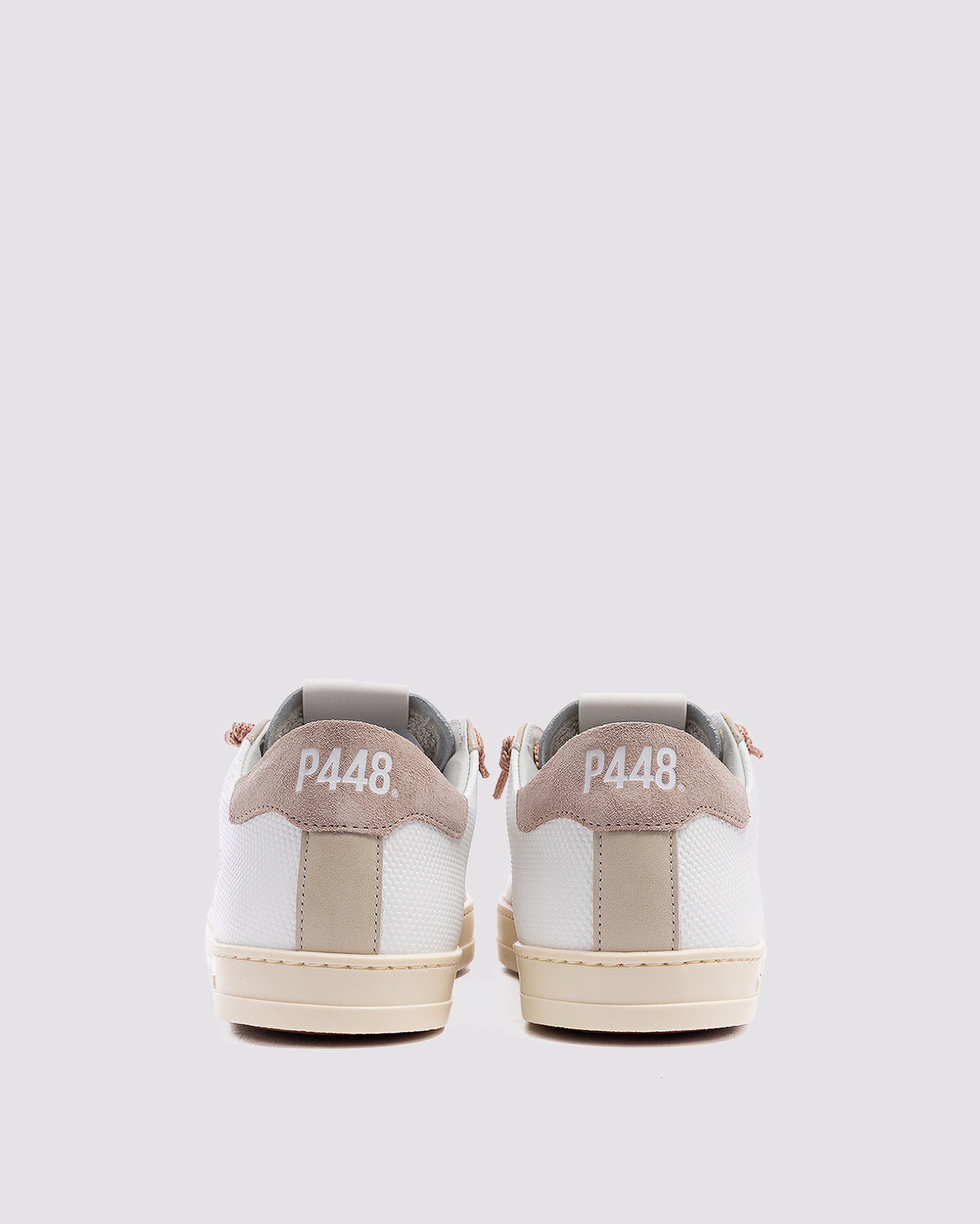 The John Soft Beige is wrapped in white and beige leather and suede, complemented by pink laces. Our signature P448 rubber sole and red tread ground the look. Swap in the extra pair of beige laces for a monochromatic moment.