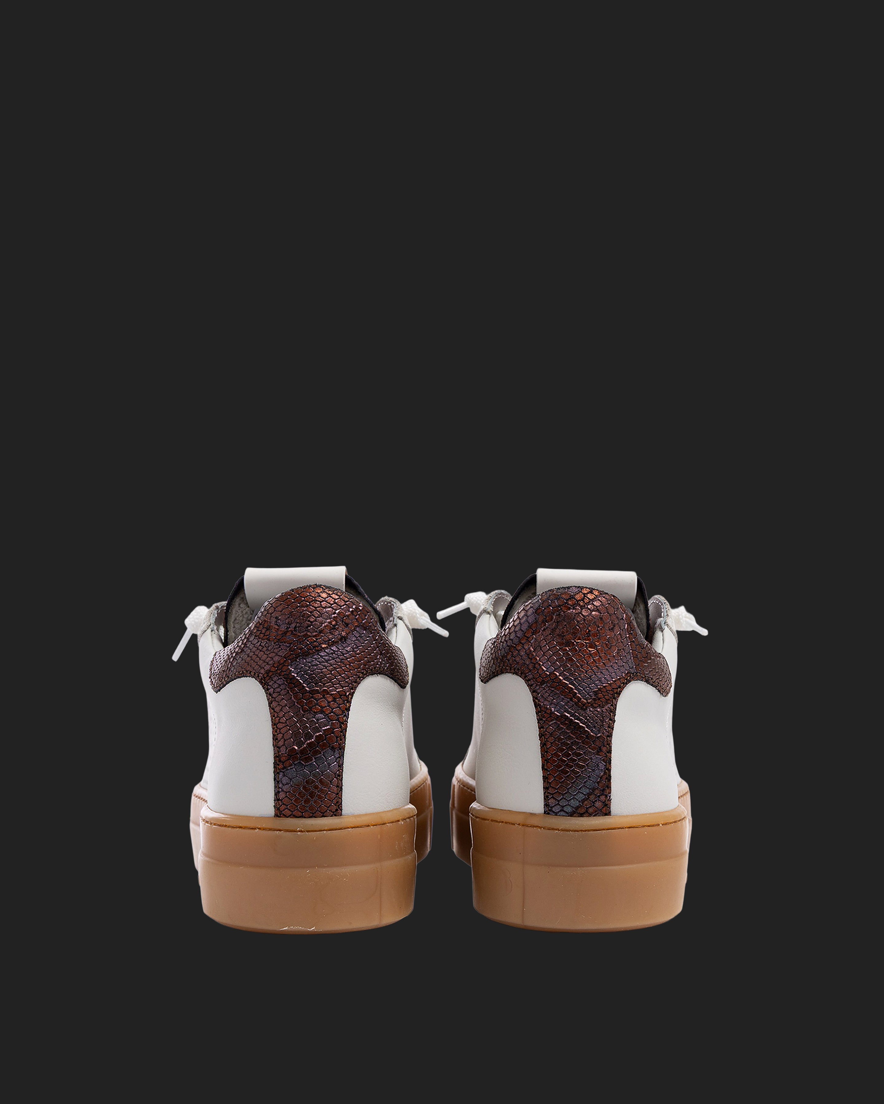 The Thea Pearl/White is wrapped in white leather with a perforated P448 logo, complemented by textured black suede details at the tongue and heel tab with white suede trim. White laces and our signature P448 rubber platform soles with gum treads finish off the look. This playful platform runs small, so be sure to size up if you’re in between. Extra pink lace included