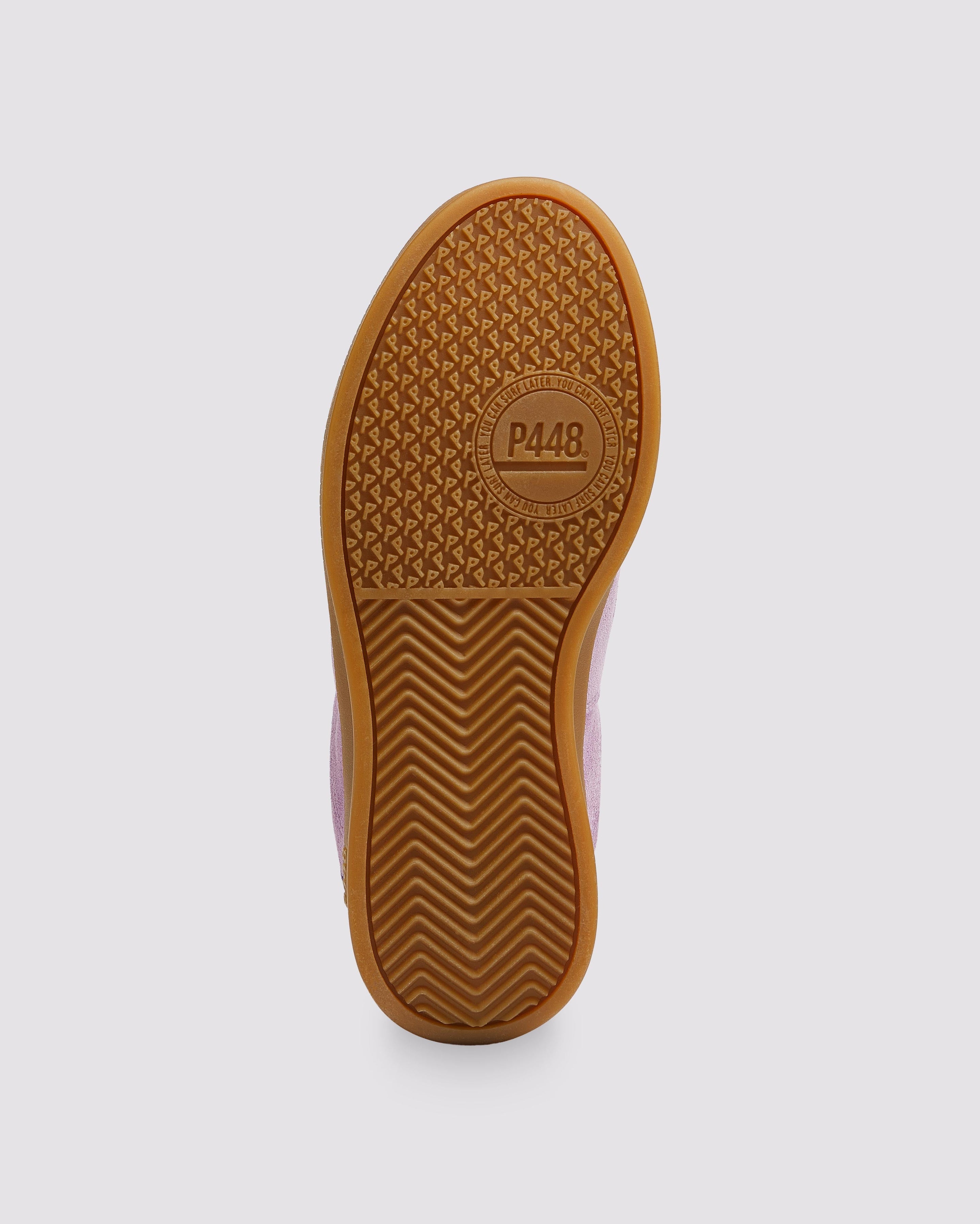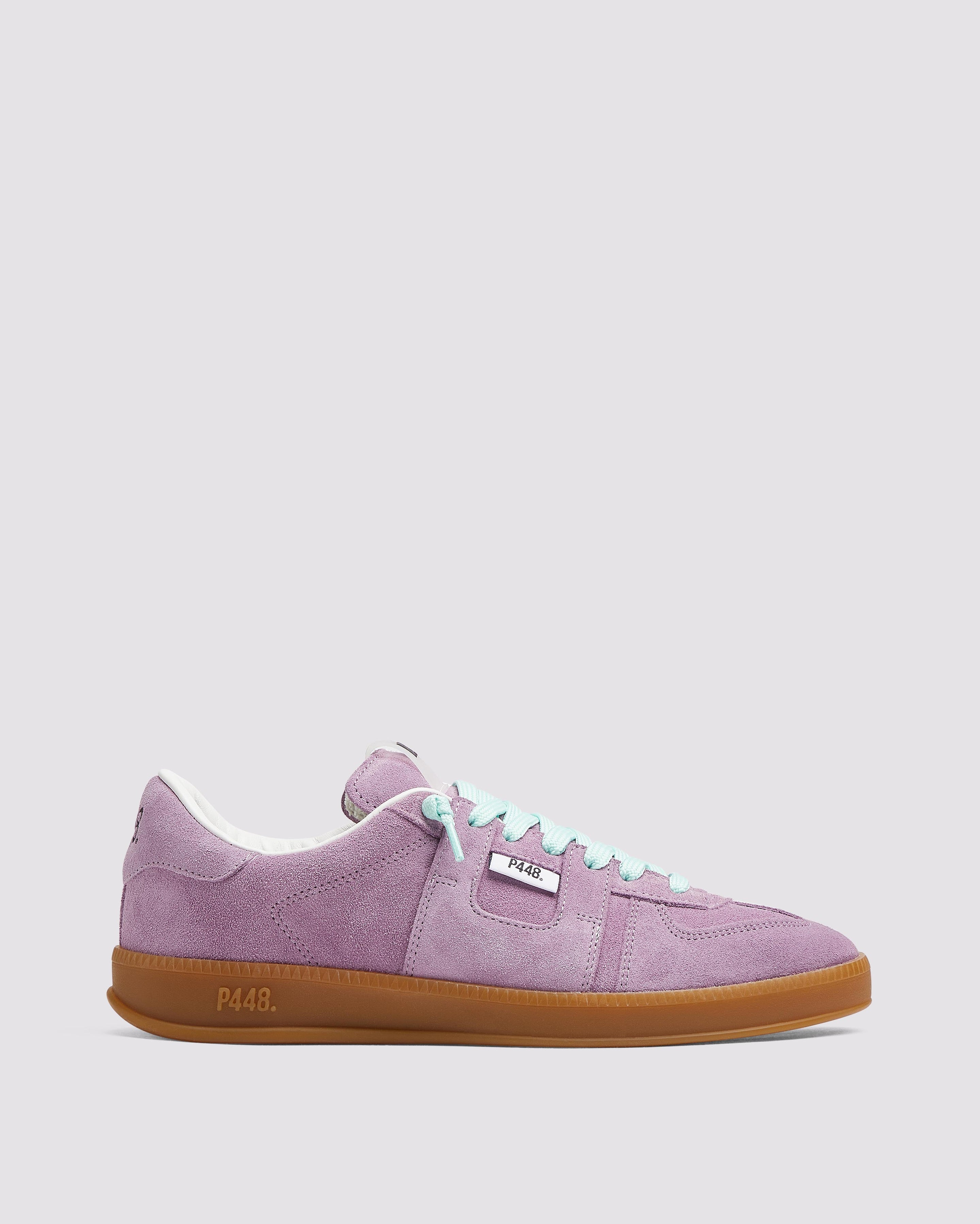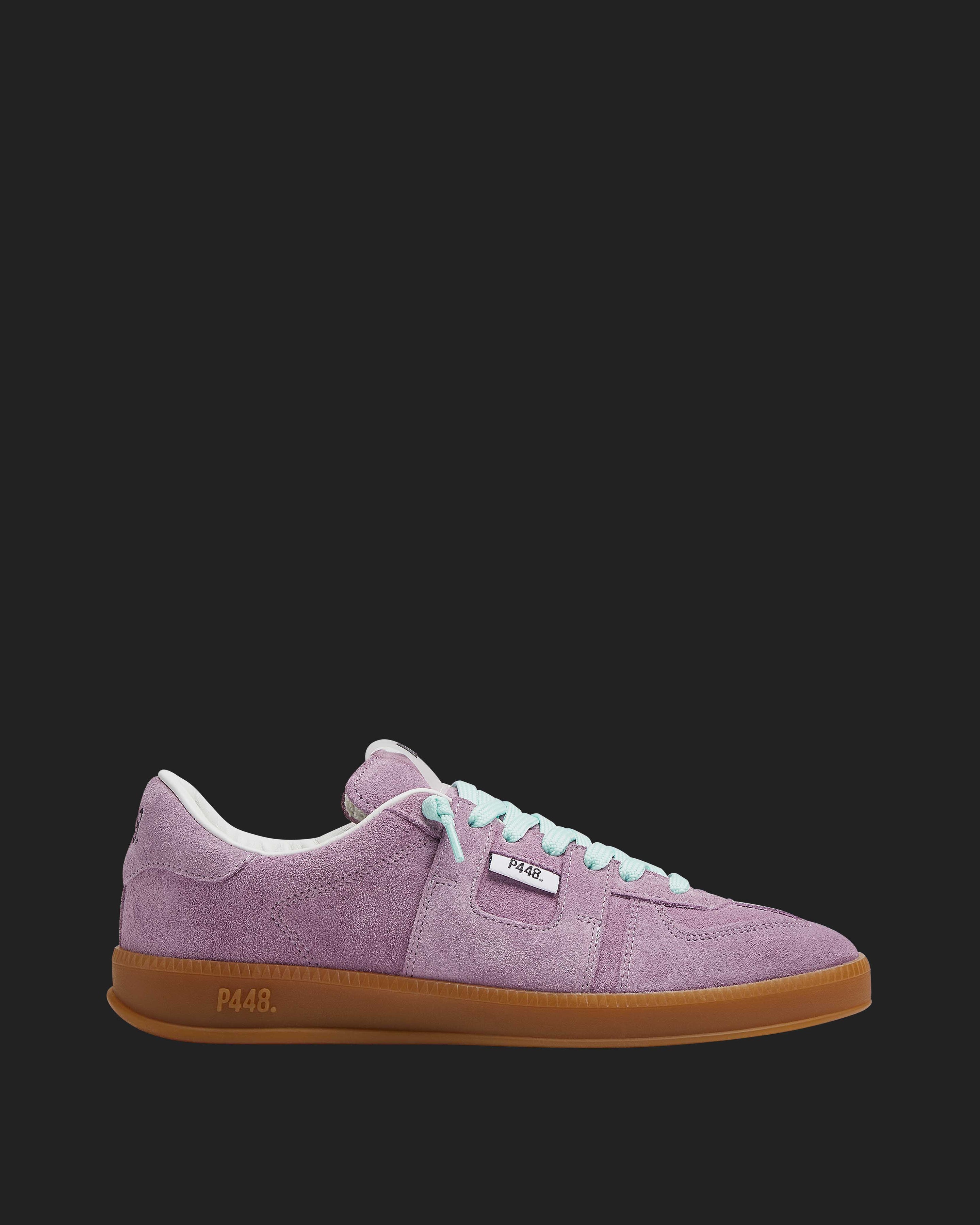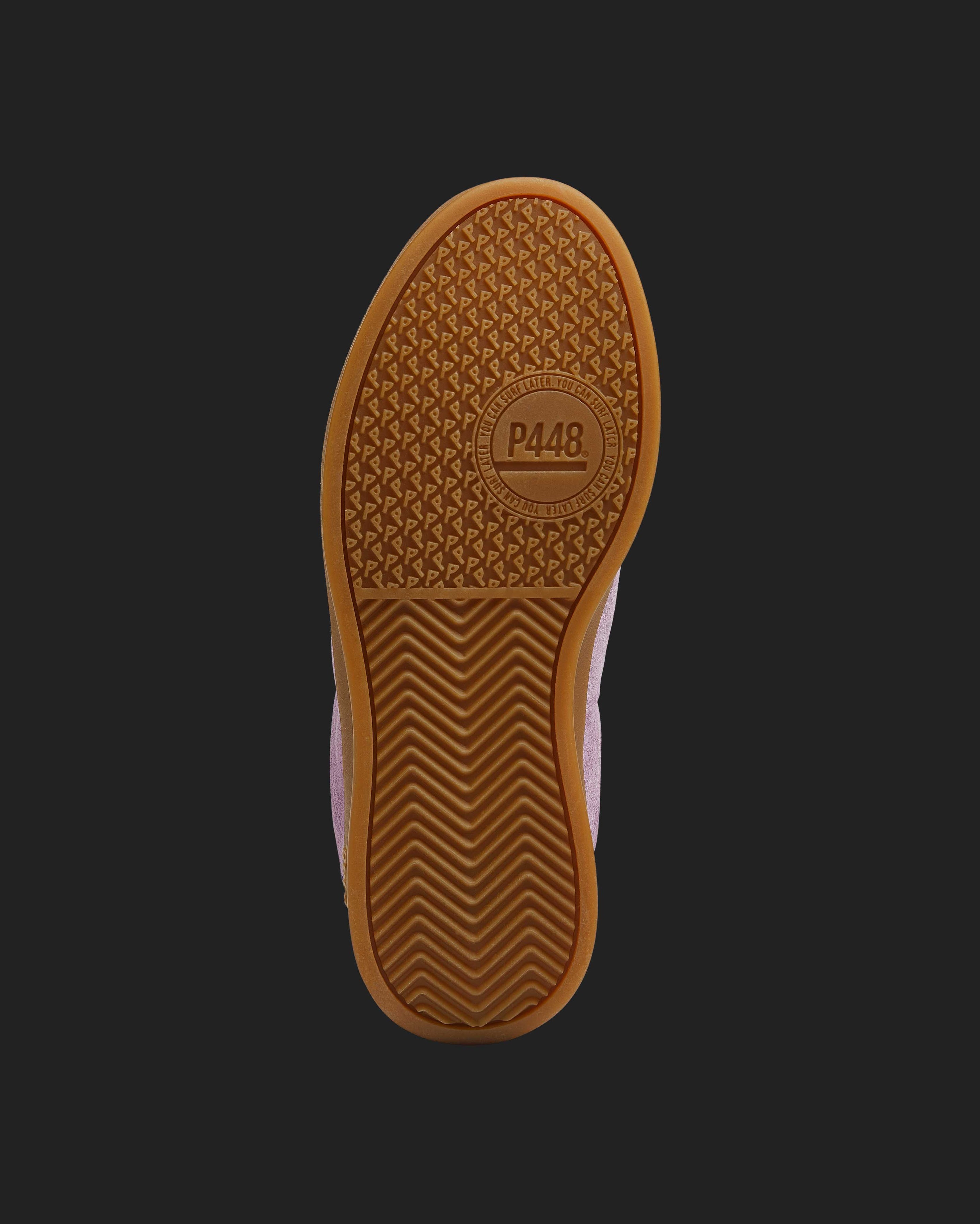 Both feature matching suede tongues, trims, toes, and heel accents. Light blue laces on one and orange laces on the other, along with our signature P448 rubber soles finished with black treads, tie it all together.