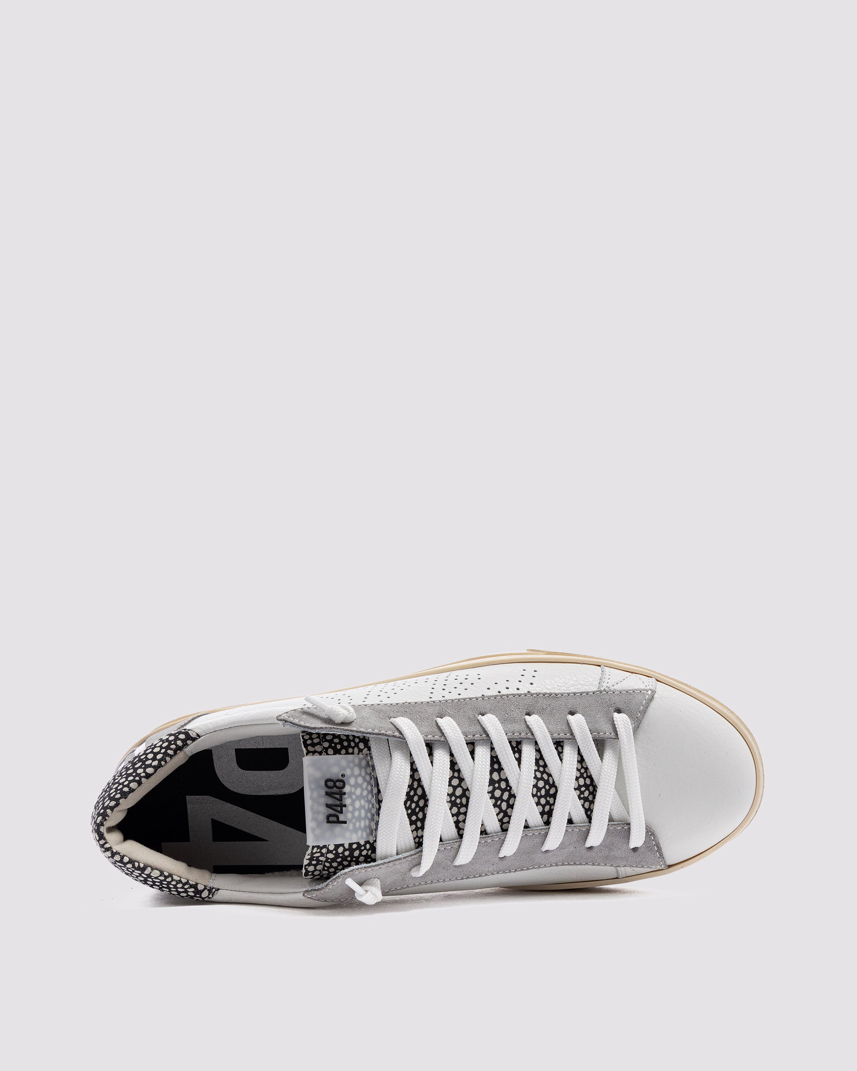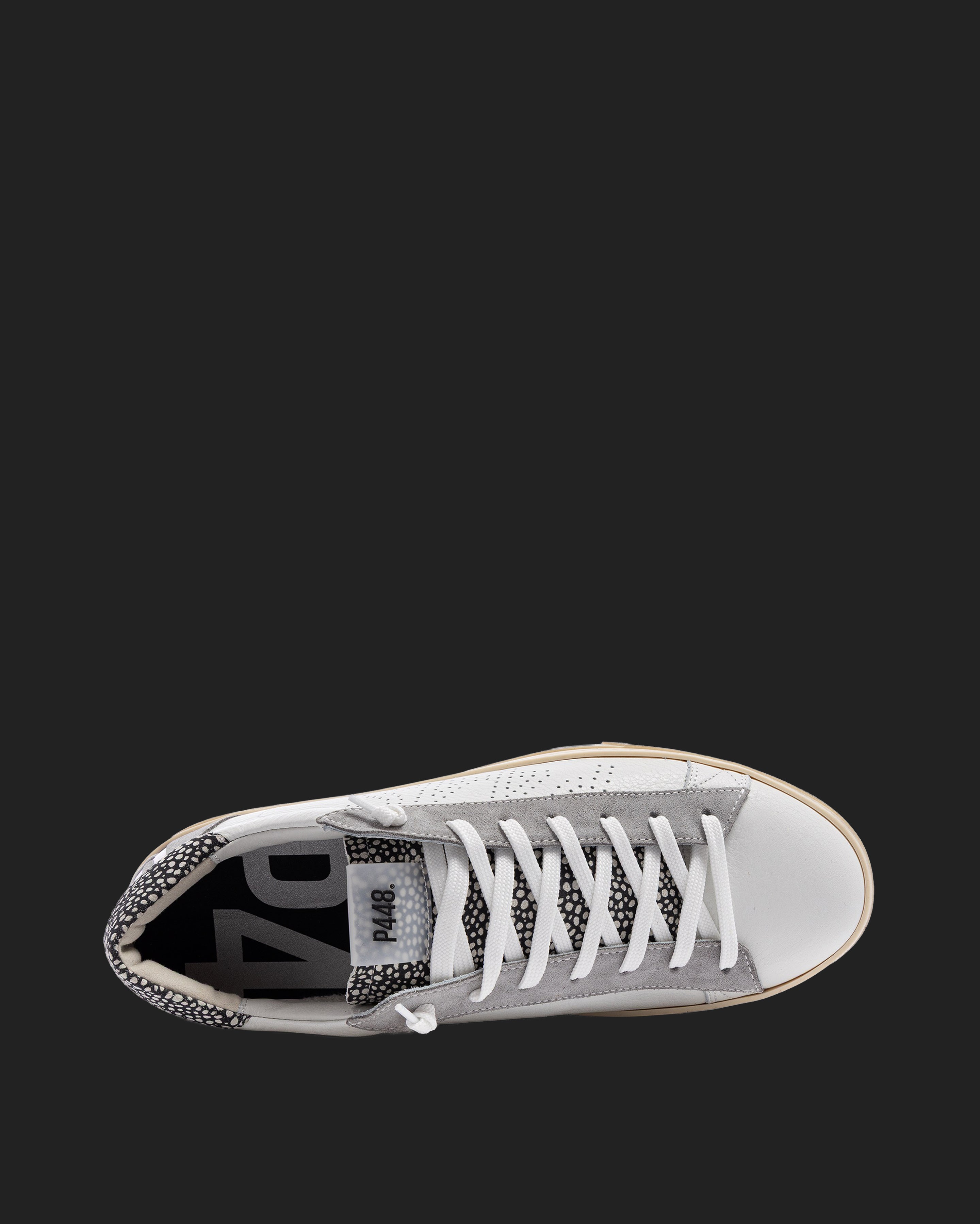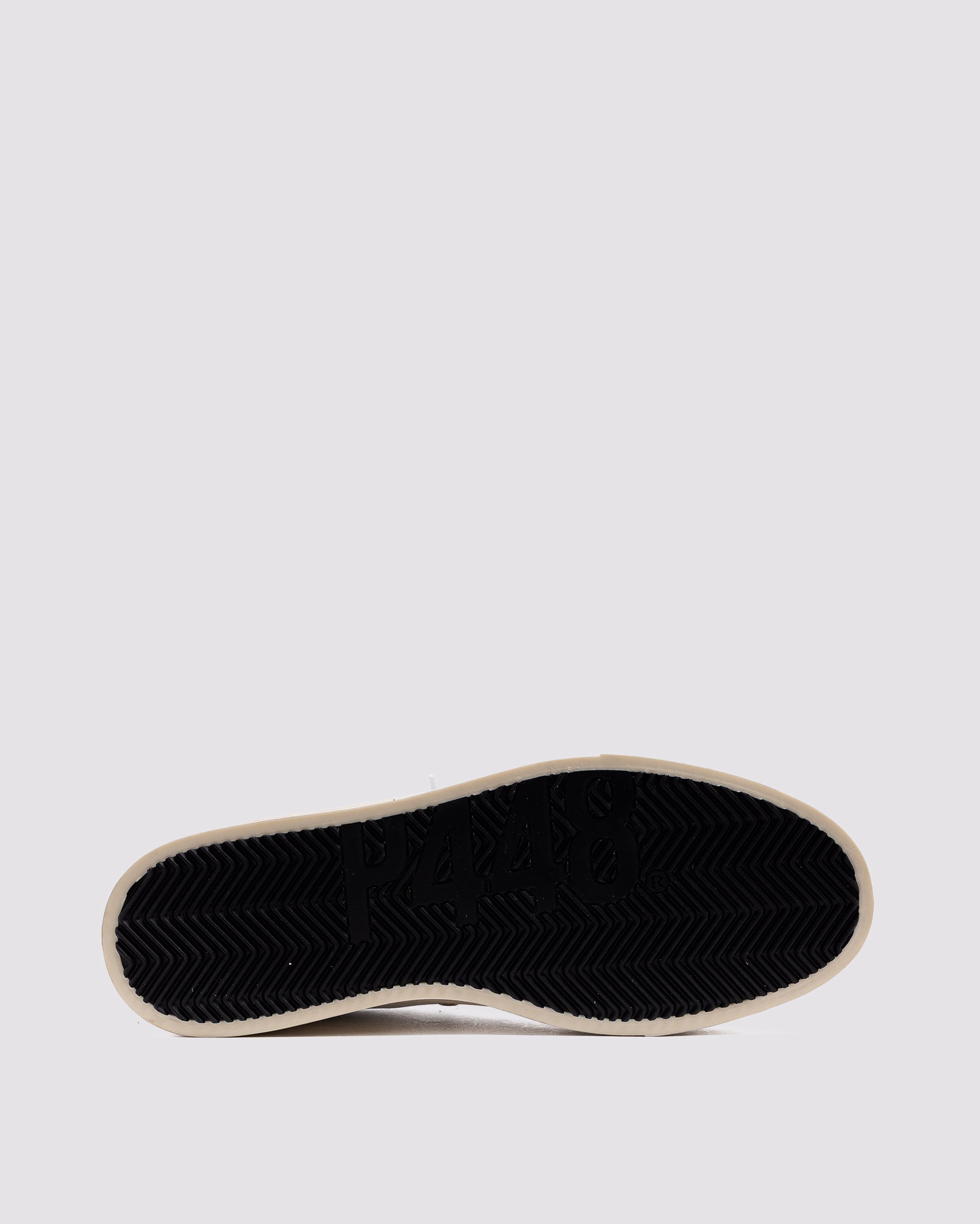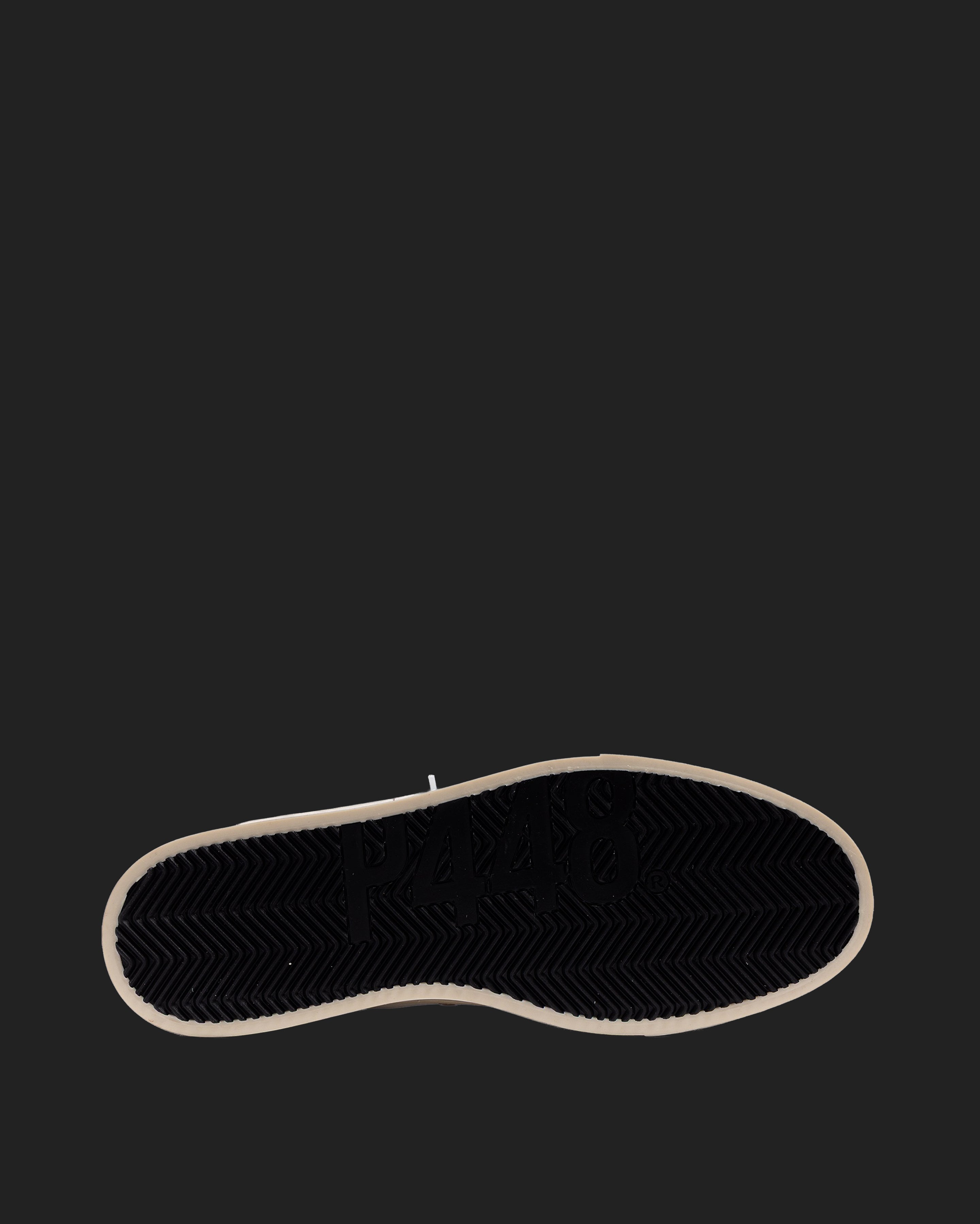 • White leather upper with perforated P448 logo